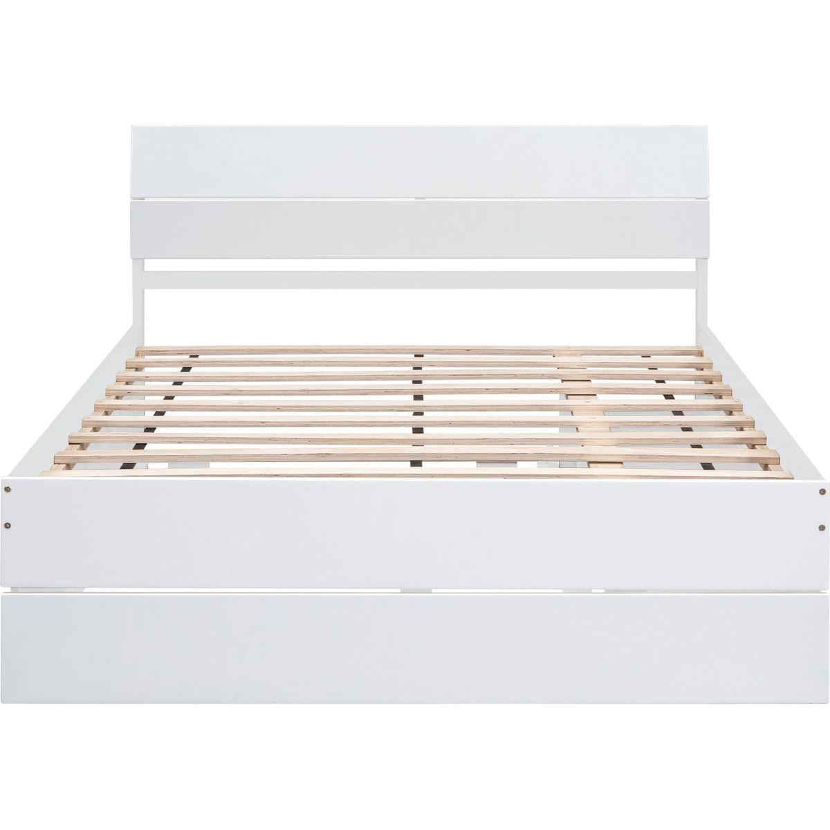 Modern Full Bed Frame With Twin Size Trundle And 2 Drawers For White High Gloss and Washed White Color
