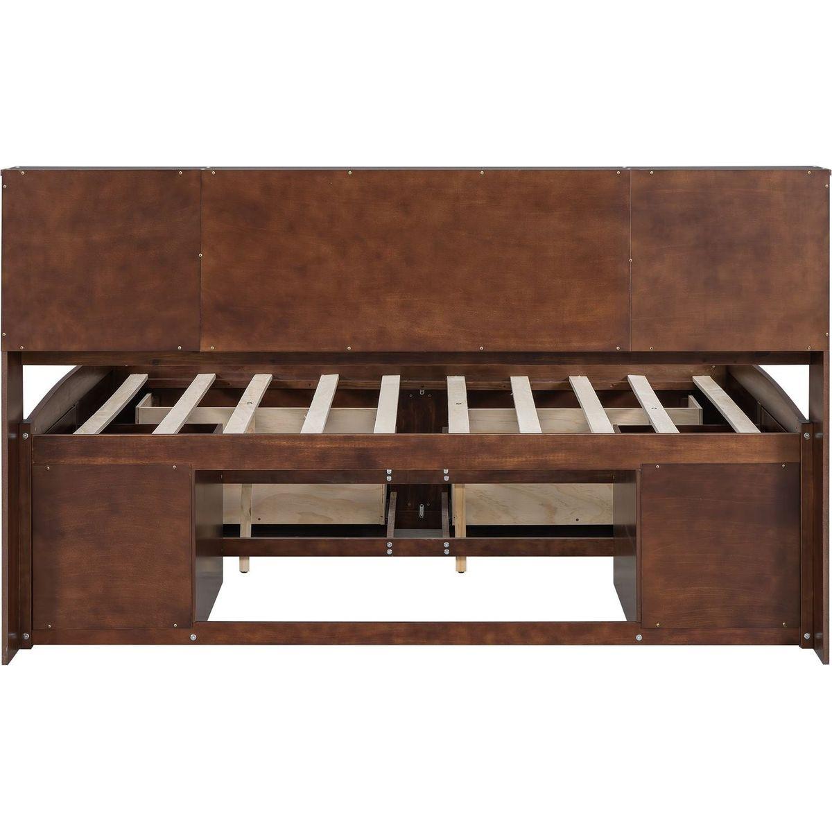 Full Size Wooden Captain Bed with Built-in Storage Shelves, 4 Drawers and 2 Cabinets, Antique Brown