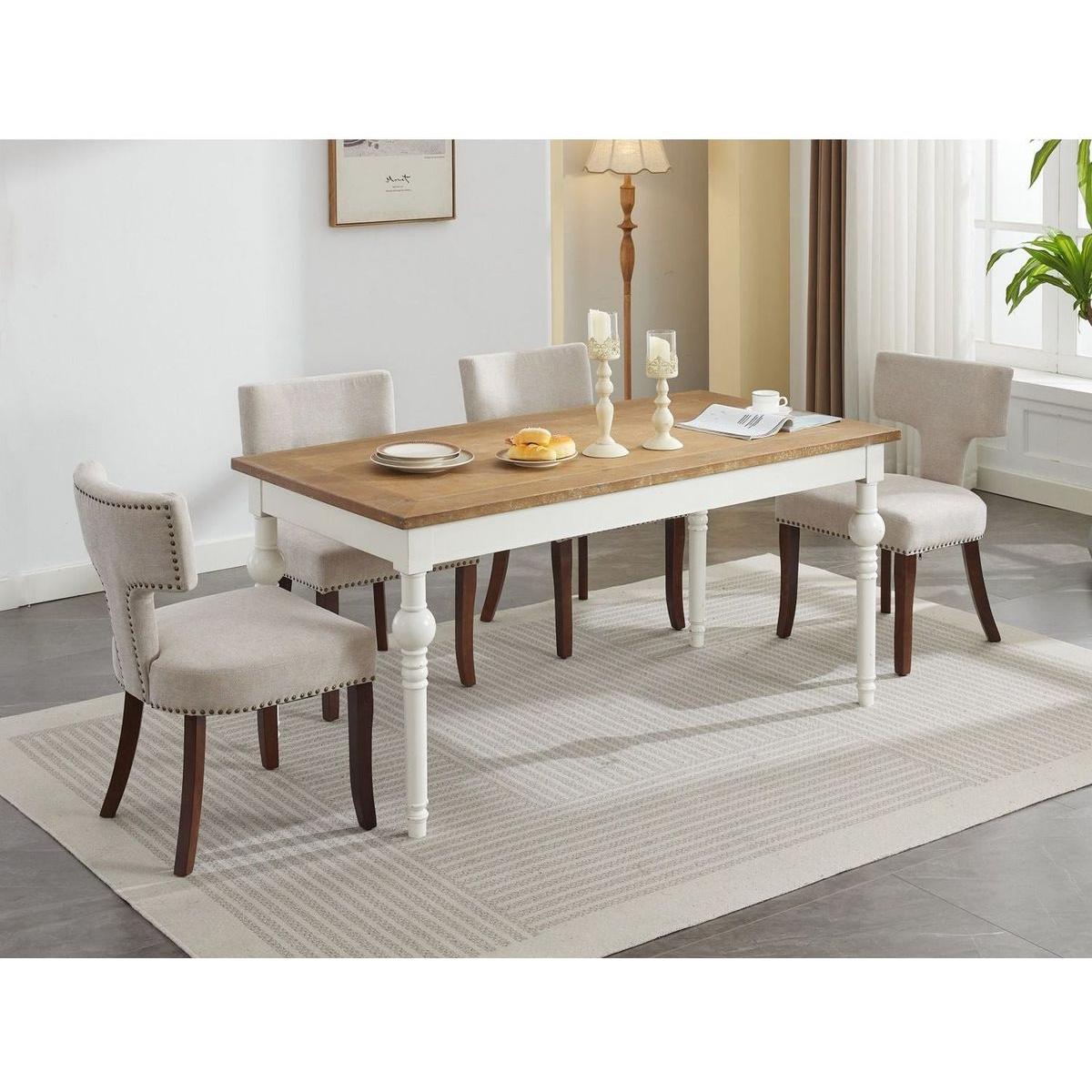 Mid Century Modern Dining Chairs Set of 2, Farmhouse Linen Fabric Upholstered Accent Chair Curved Backrest with Copper Nails around,Kitchen Chairs with Hardwood Frame, Beige