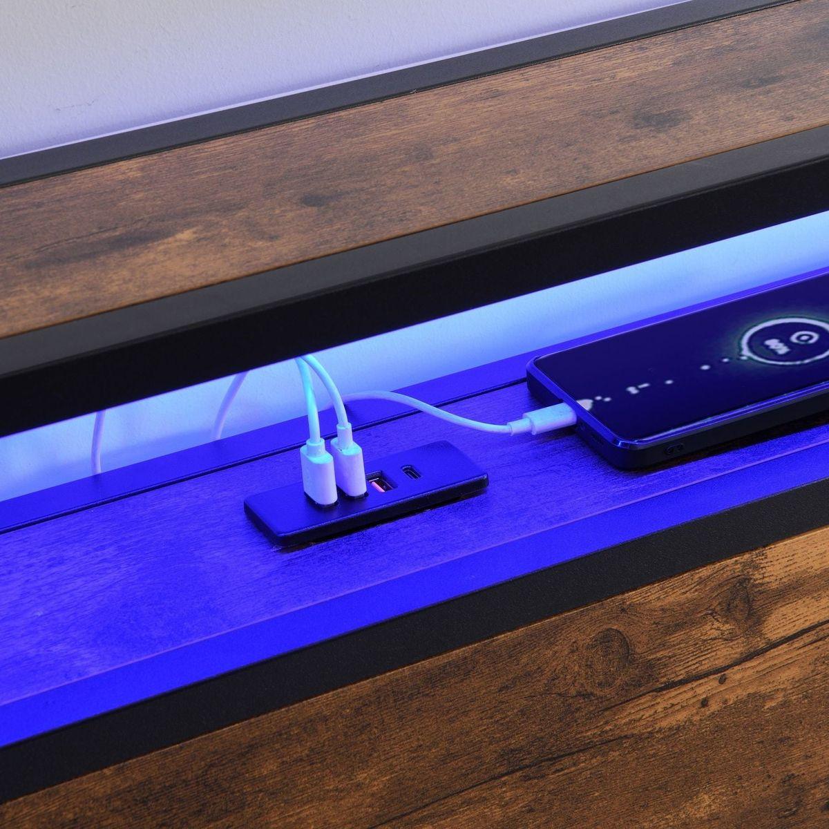 - Smart RGB Led Bed Frame Full: This Led bed frame features with Led-lit headboard for ambient mood lighting and the combination of rustic-wood and metal accents for industrial appearance. More than 60,000 color to be choose from, brightness, flash mode, timing, etc., can use the equipped remote control or mobile APP to set free easily. Change the led color to meet your needs of different styles and make the atmosphere more vivid! Also make your home life more colorful.