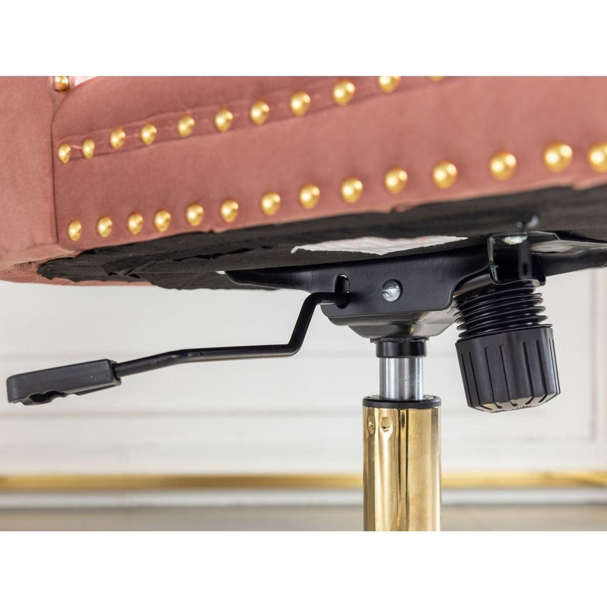 Office Chair,Velvet Upholstered Tufted Button Home Office Chair with Golden Metal Base,Adjustable Desk Chair Swivel Office Chair (Pink)