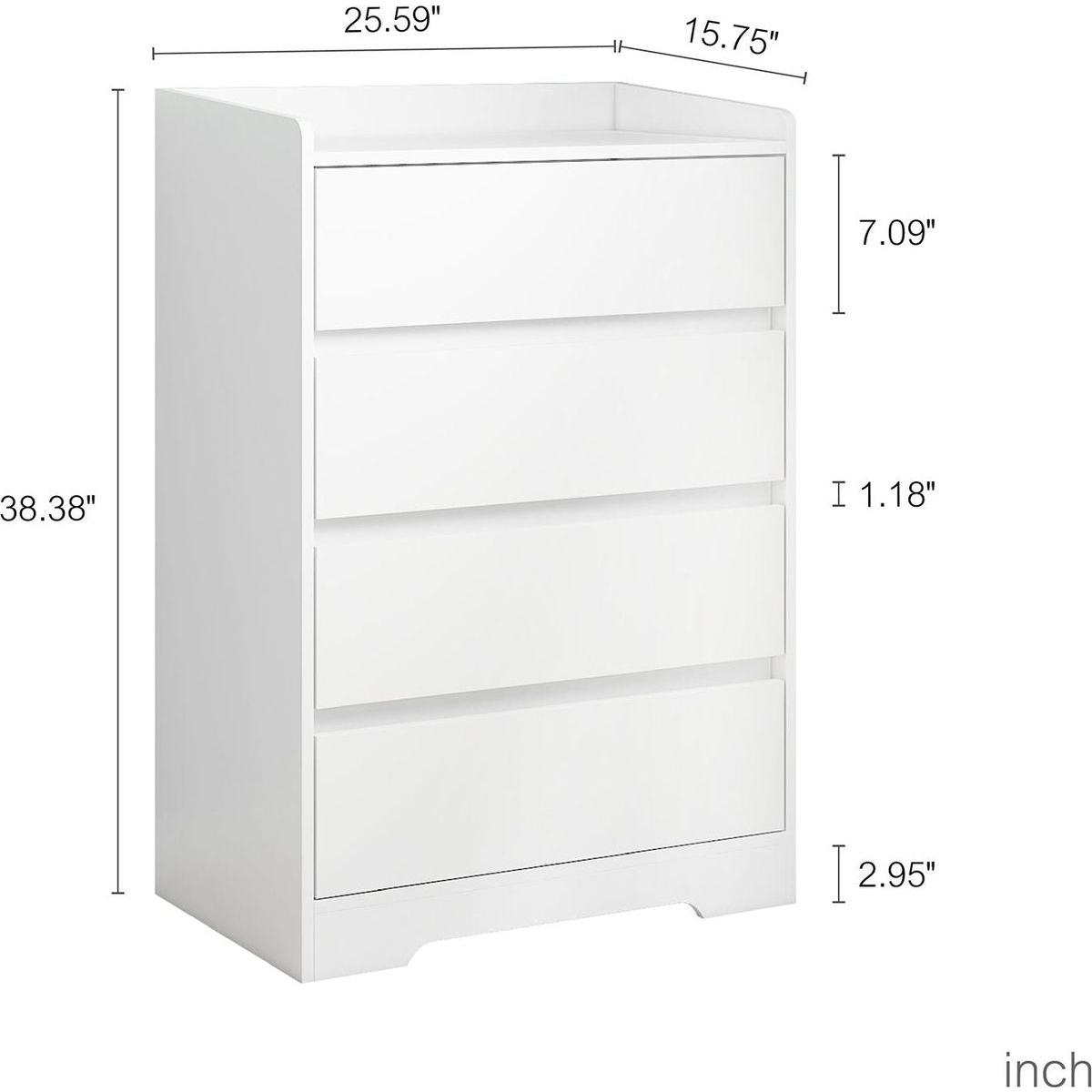 4 Drawer Dresser, Chest of Drawers Without Handle, White Dresser for Bedroom 100% Waterproof, Modern Wooden Cabinet with Sturdy Frame for Living Room, Entryway, Bedroom, Hallway, Office