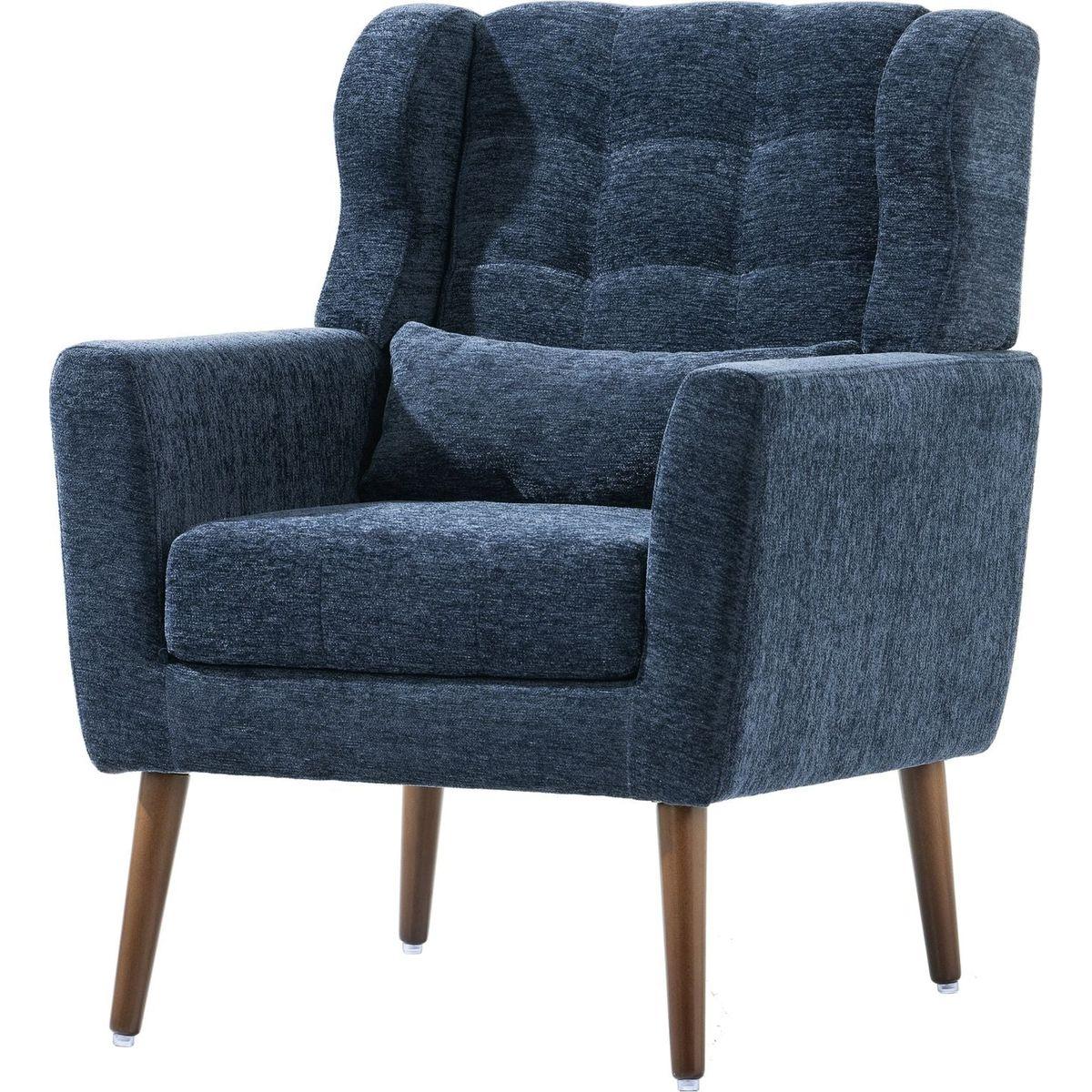 Modern Accent Chair Upholstered Foam Filled Living Room Chairs Comfy Reading Chair Mid Century Modern Chair with Chenille Fabric Lounge Arm Chairs Armchair for Living Room Bedroom (Dark Blue)