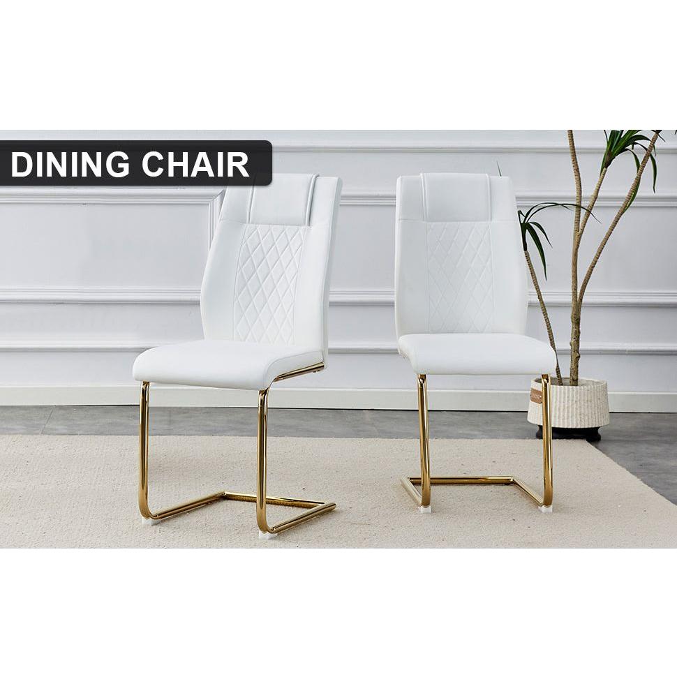Modern dining chairs, dining room chairs, and golden leg cushioned chairs made of artificial leather, suitable for kitchens, living rooms, bedrooms, and offices. Set of 4 pieces (white+PU)