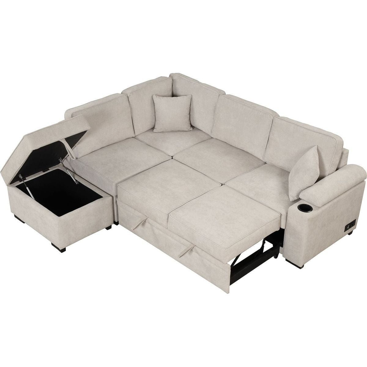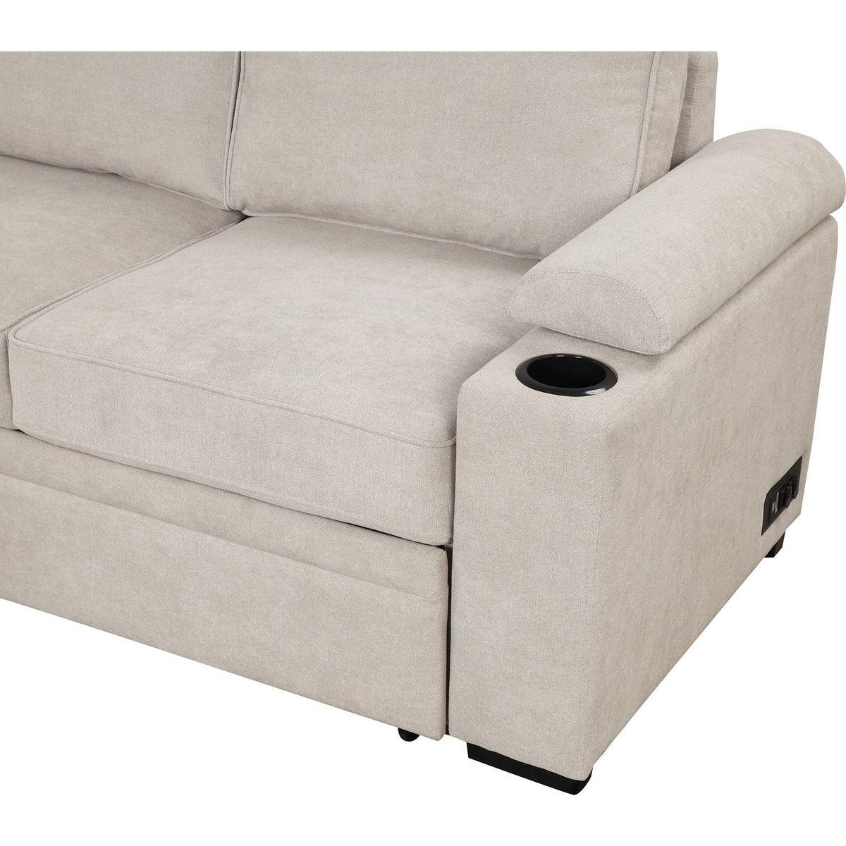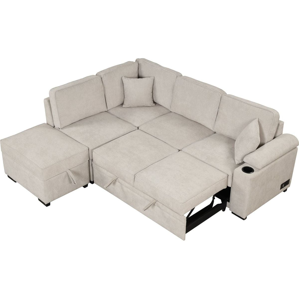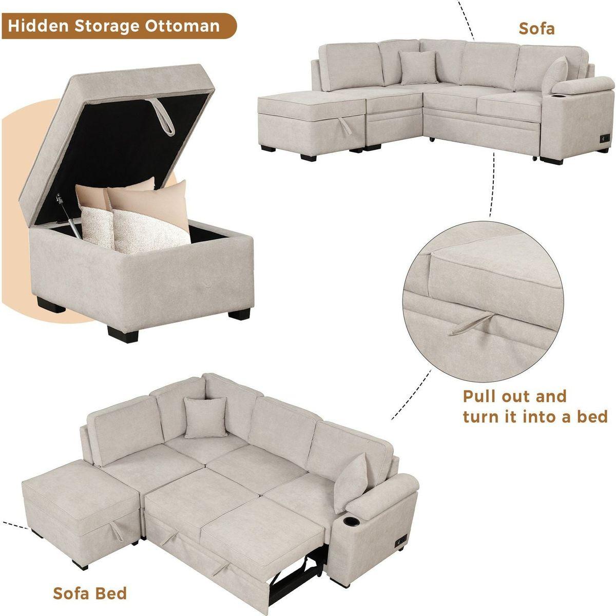 87.4" Sleeper Sofa Bed, 2 in 1 Pull Out sofa bed L Shape Couch with Storage Ottoman for Living Room, Bedroom Couch and Small Apartment, Beige