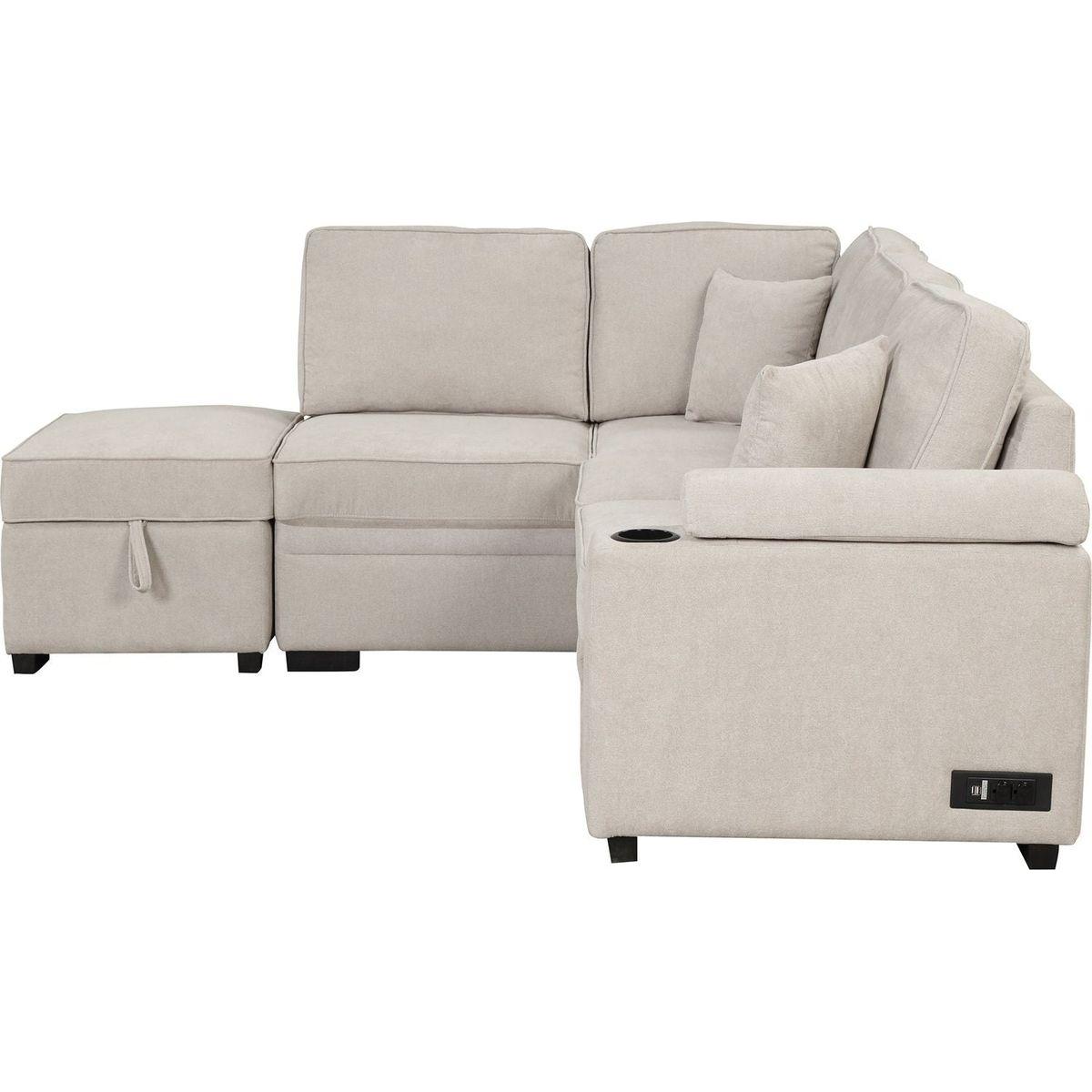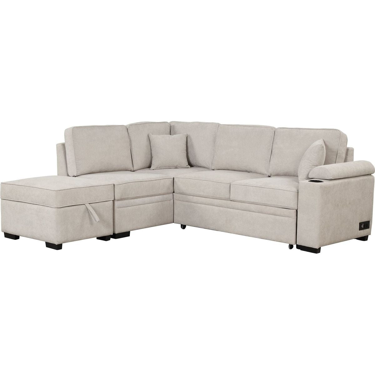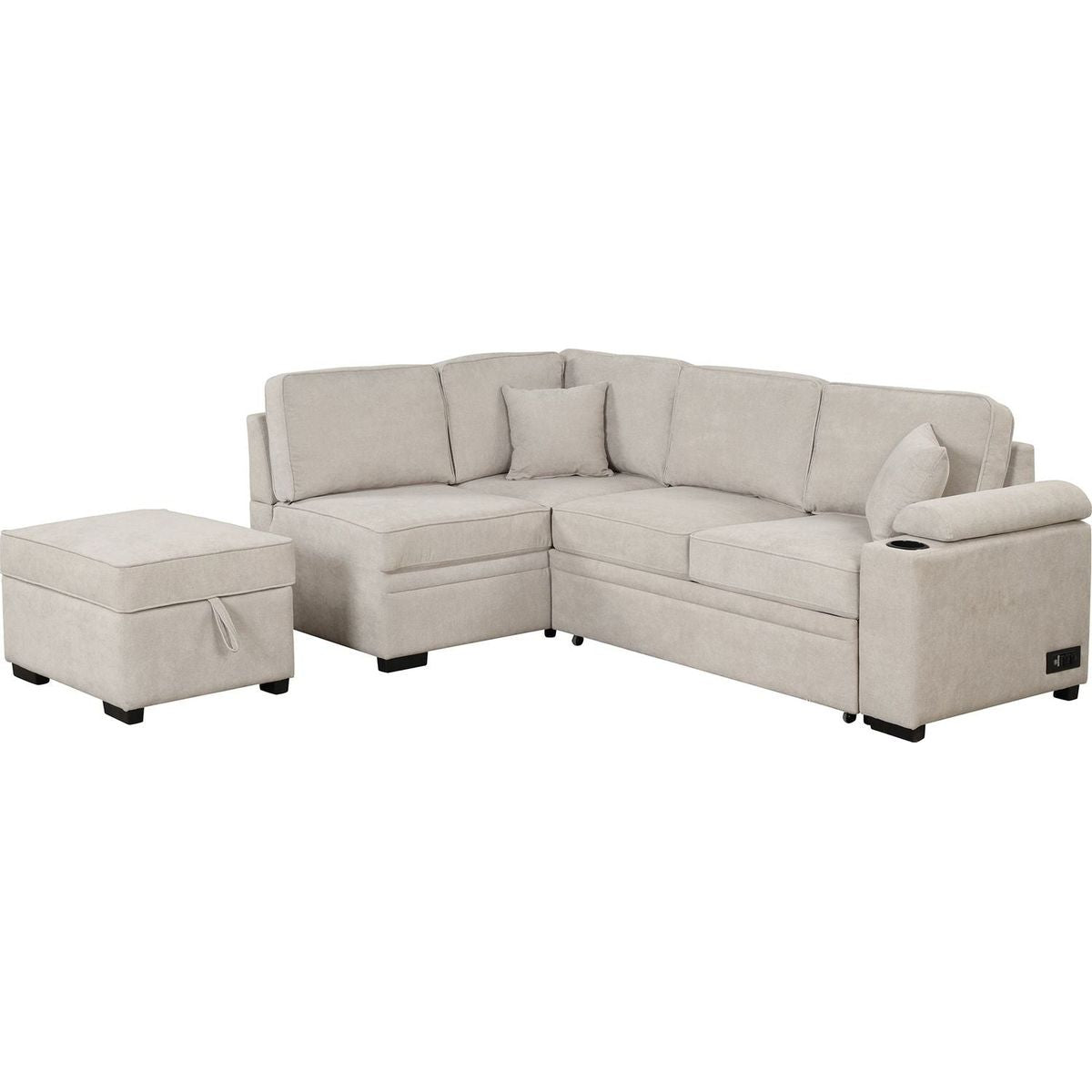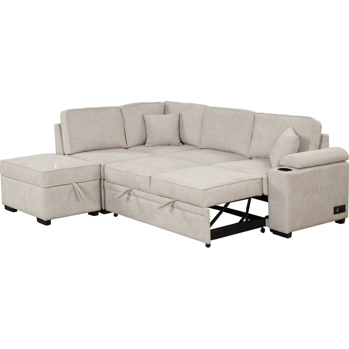 87.4" Sleeper Sofa Bed, 2 in 1 Pull Out sofa bed L Shape Couch with Storage Ottoman for Living Room, Bedroom Couch and Small Apartment, Beige