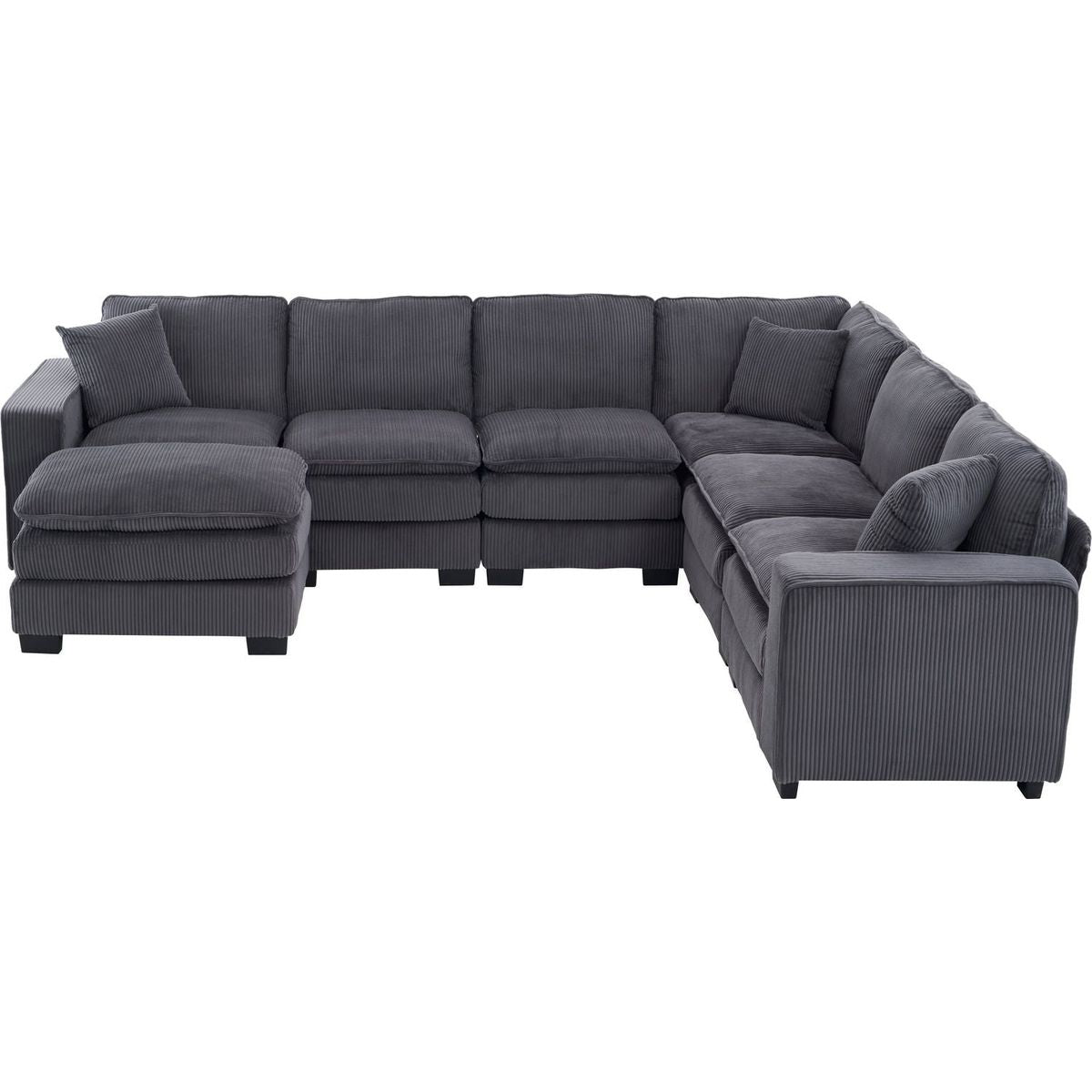 Modern U Shaped 6-seat Sectional Sofa Couch with one Ottoman and three toss pillows, Modular Sofa for Living Room,Corduroy sofa