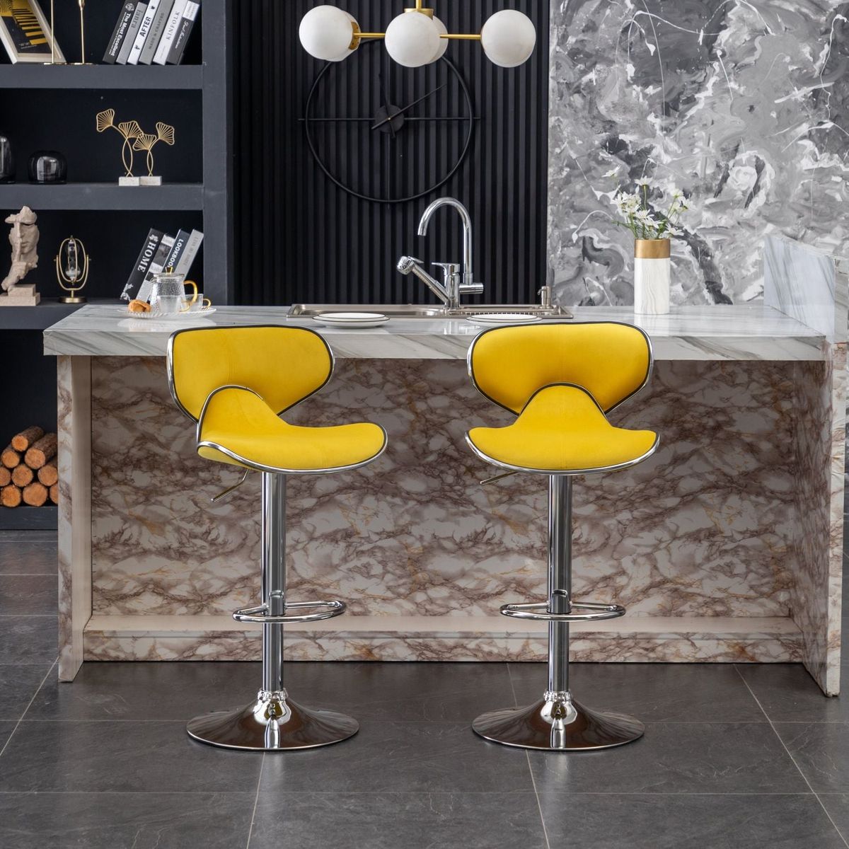 Masaccio Velvet Upholstered Adjustable Swivel Barstool, Set of 2, Yellow