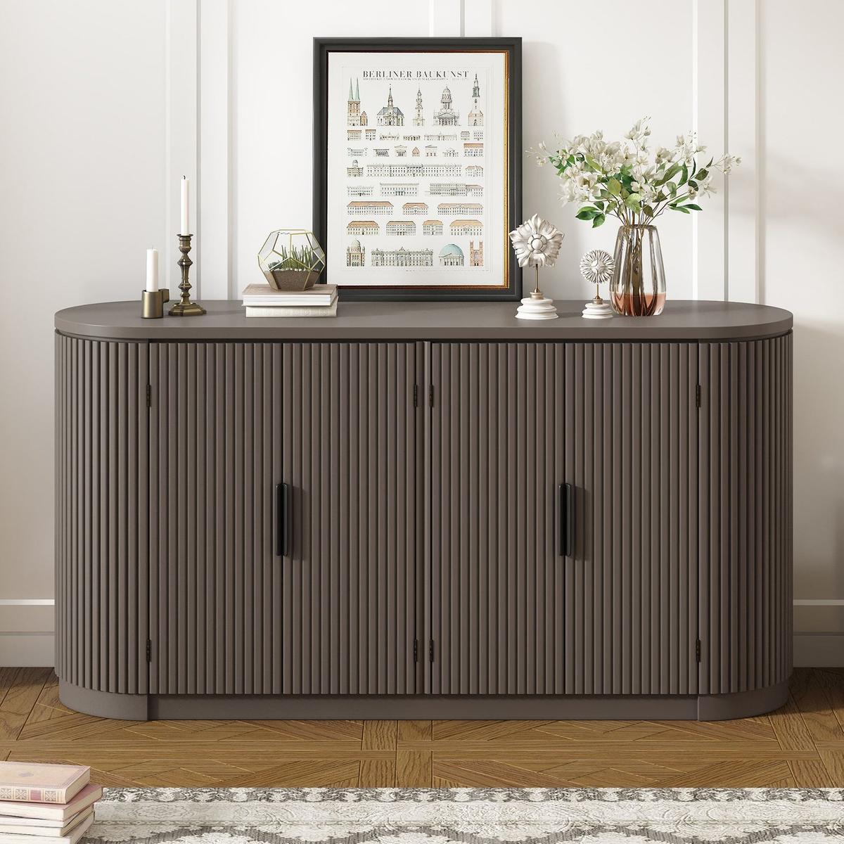 - [Versatile Placement]The sophisticated look of the vertical striped cabinet doors allows the sideboard to seamlessly blend into various interior styles, from contemporary to traditional. Its versatility in design makes it an ideal piece for dining rooms, living areas, or hallways.