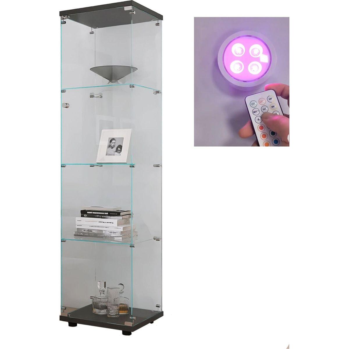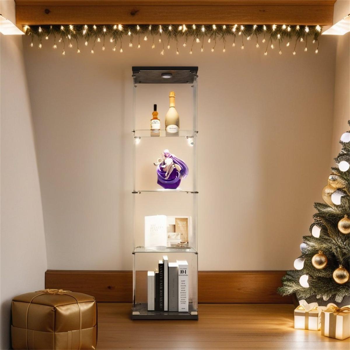 Lighted 4 Shelves Glass Cabinet Glass Display Cabinet with One Door, Black
