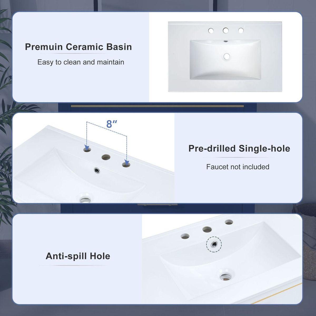 Modern 30inch Navy Blue/White Bathroom Vanity Cabinet Combo with Open Storge, Two Drawers