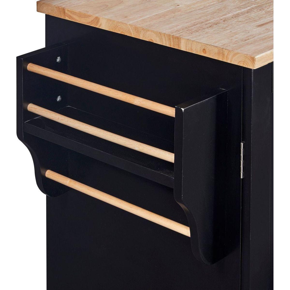 Rolling Kitchen Island with Storage, Kitchen Cart with Rubber Wood Top, 3 Drawer, 2 Slide-Out Shelf and Internal Storage Rack, Kitchen Island on Wheels with Spice Rack & Tower Rack, Black
