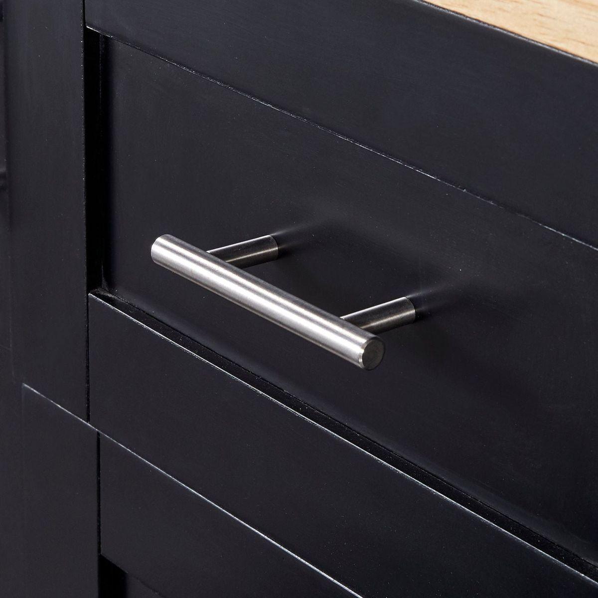 This 43" D kitchen island is meticulously designed to optimize functionality and organization in your culinary space. Boasting three drawers and two slide-out shelves, it offers abundant storage capacity for all your essential items. Bid farewell to a cluttered countertop as this cart ensures meticulous placement of everything, while also providing additional room for pots, pans, utensils, small appliances, and pantry necessities.