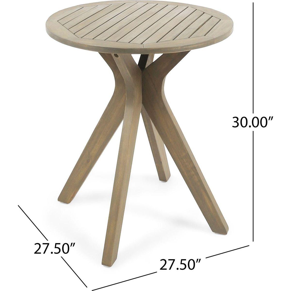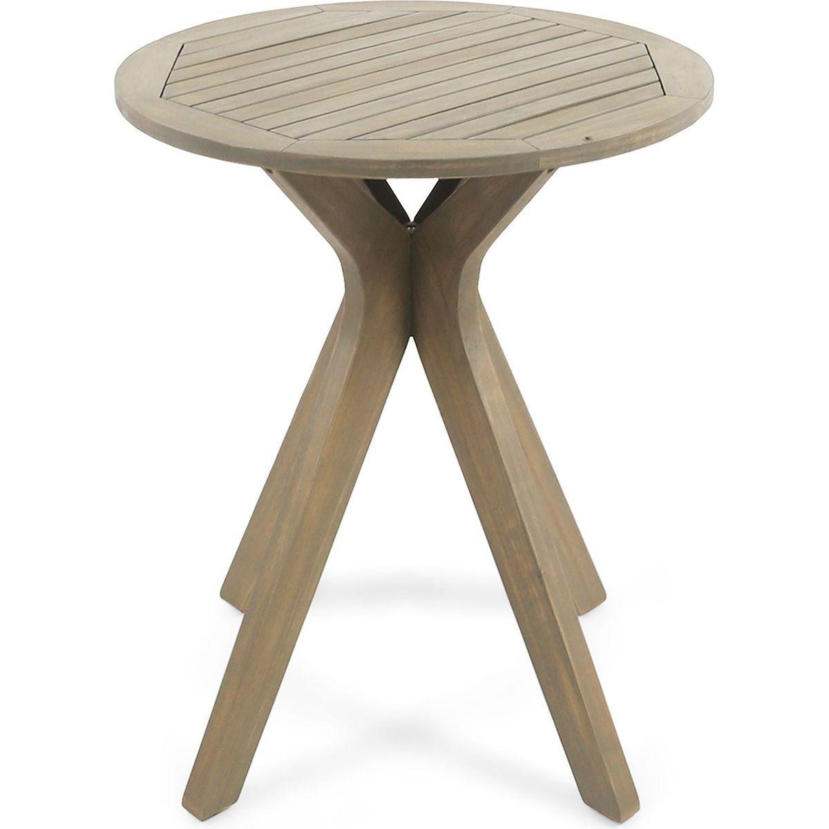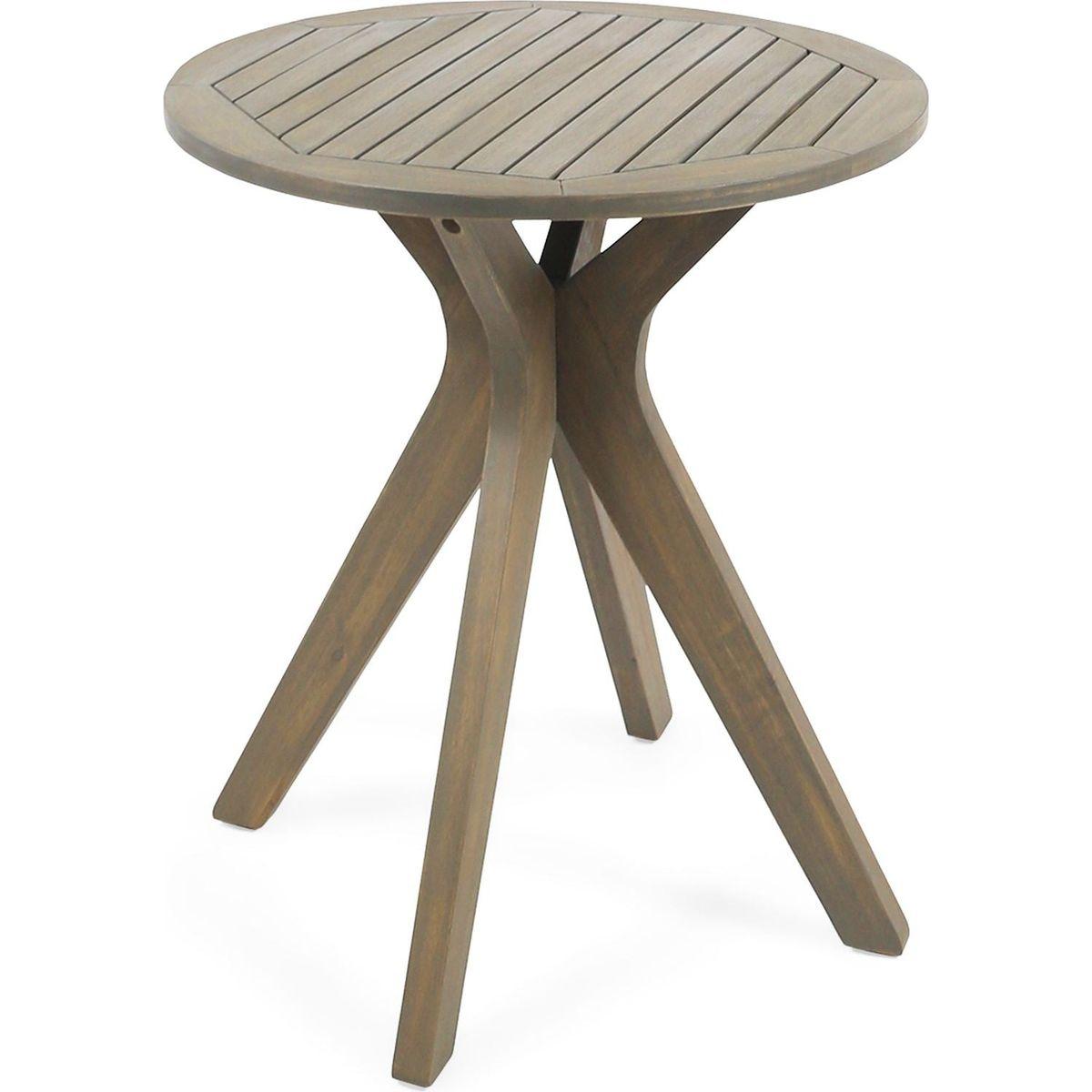 - Elevate your outdoor dining experience in an instant. Crafted from rich acacia wood, our slat-panel bistro table offers your backyard or patio a chic and sophisticated place to enjoy an afternoon barbeque or a hearty evening meal.