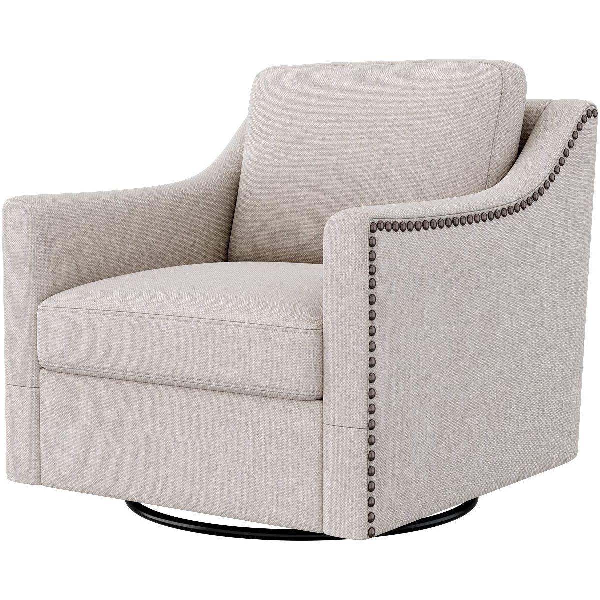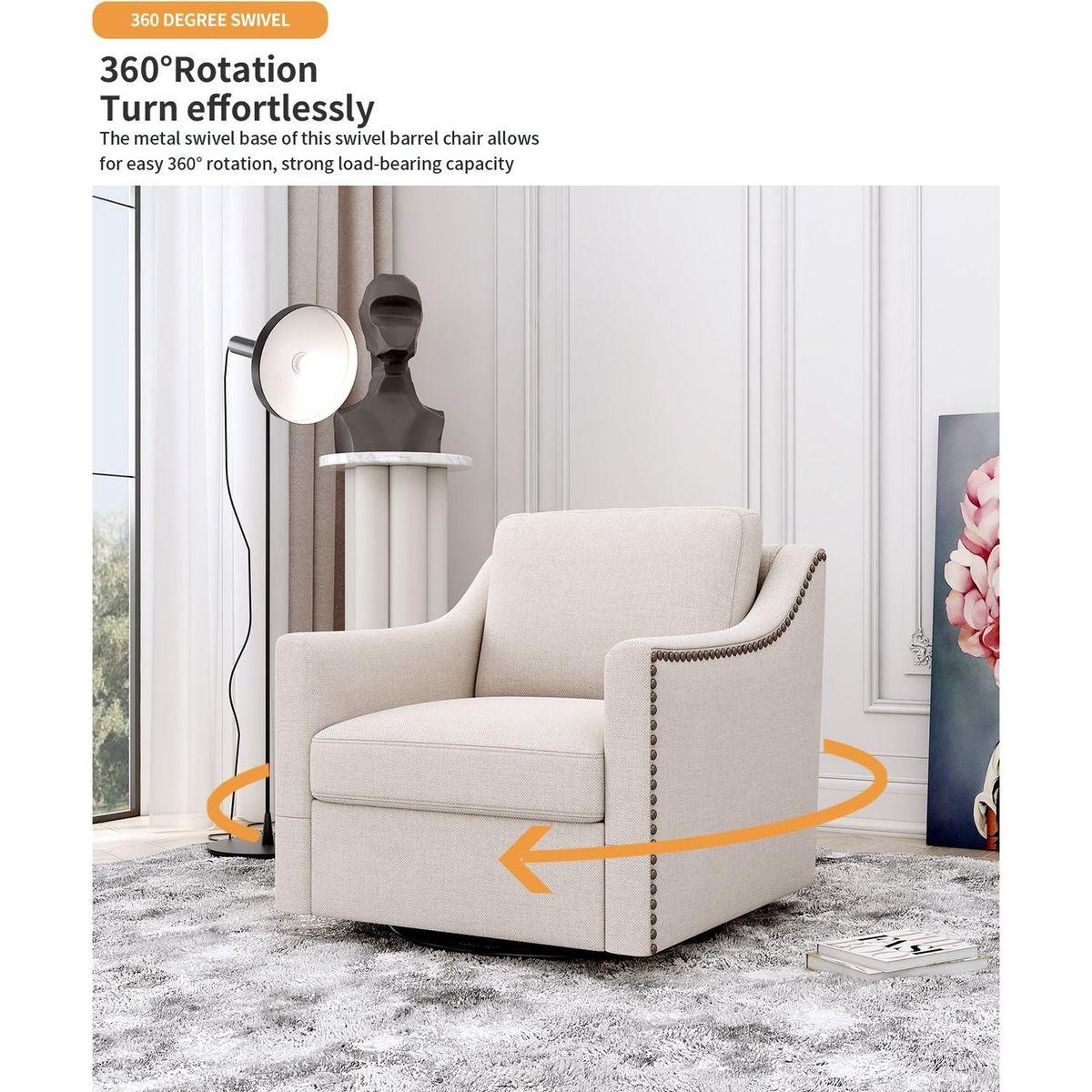 - OUTSTANDING CONSTRUCTION: This swivel chair features a soft foam padded seat + sturdy iron frame + wood frame upholstered in cotton and linen fabric. It features a sturdy metal base that can hold up to 300 pounds.