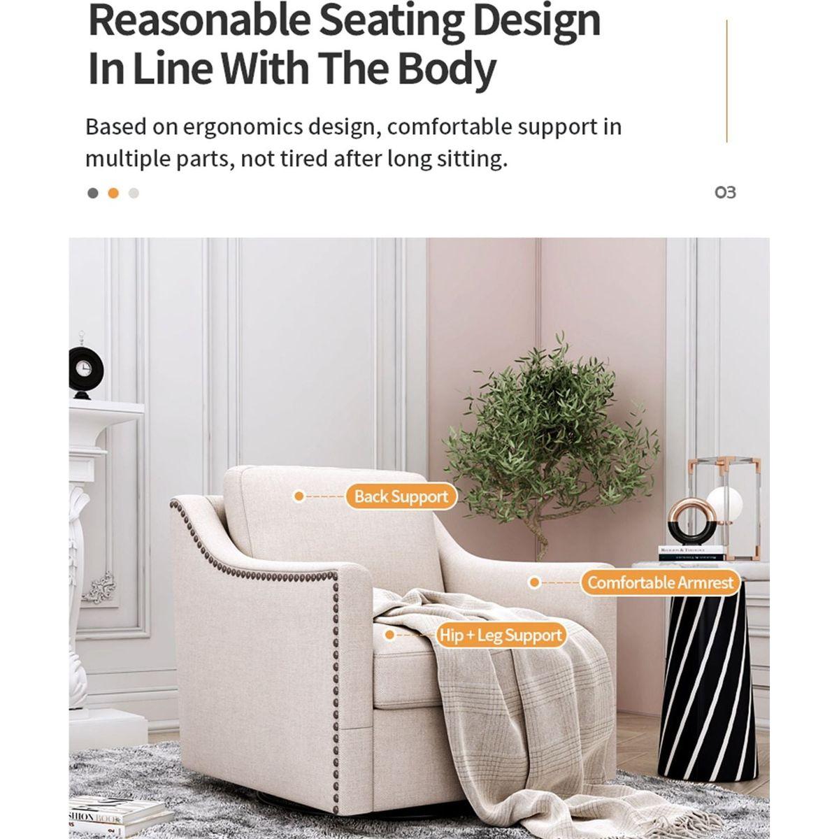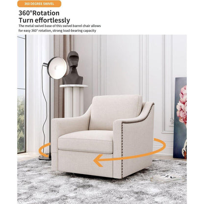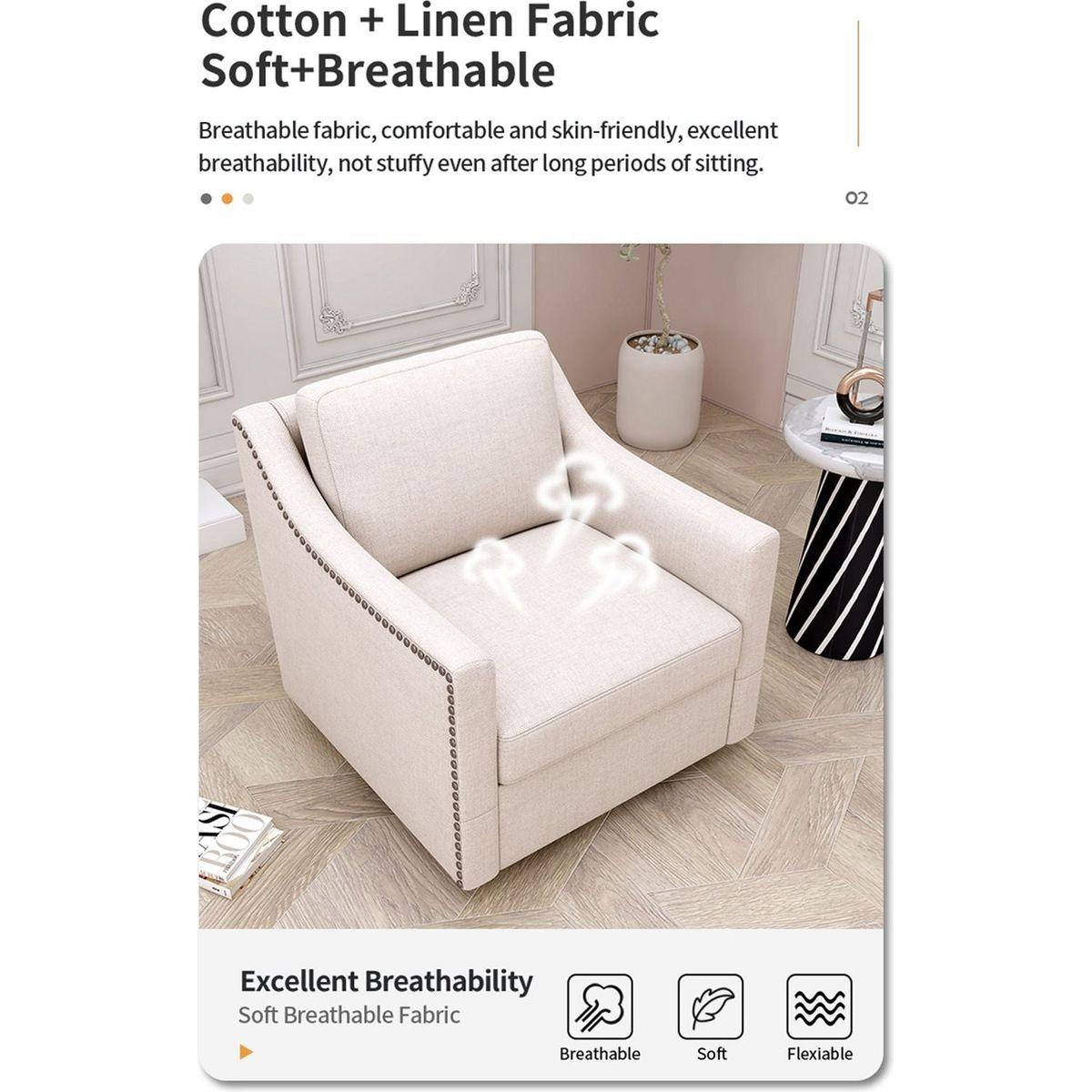 360 Degree Swivel Armchair Cotton linen skin-friendly fabric Ergonomic design Brass nail decorative armchair Living room chairs Bedroom chairs Living room chairs Black legs Suitable for indoor homes