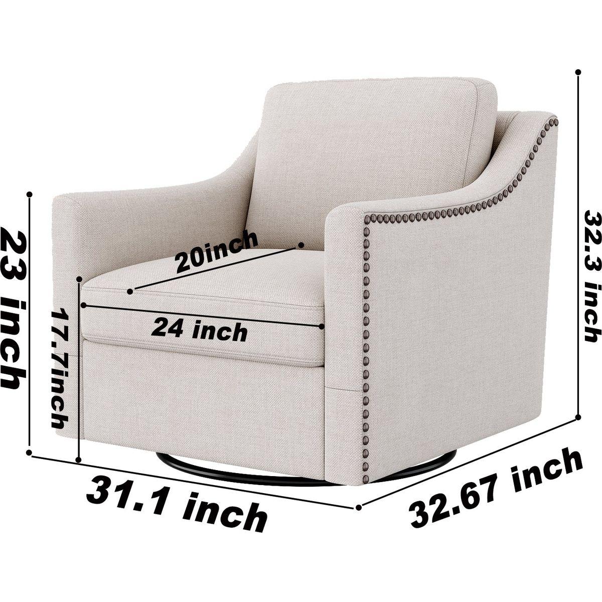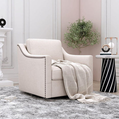 This swivel chair combines exceptional comfort and modern aesthetics. Its high-rebound sponge cushion and sturdy construction provide a cozy and supportive sitting experience, while its stylish linen-cotton fabric and antique brass nailhead trim add a touch of elegance to any space.