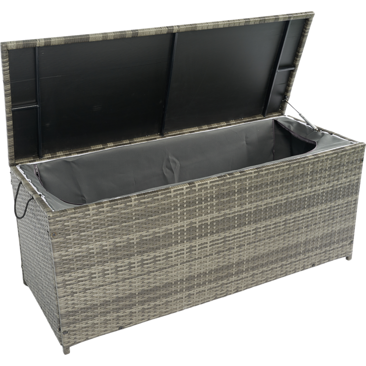 Outdoor Storage Box, 113 Gallon Wicker Patio Deck Boxes with Lid, Outdoor Cushion Storage for Kids Toys, Pillows, Towel Grey Wicker