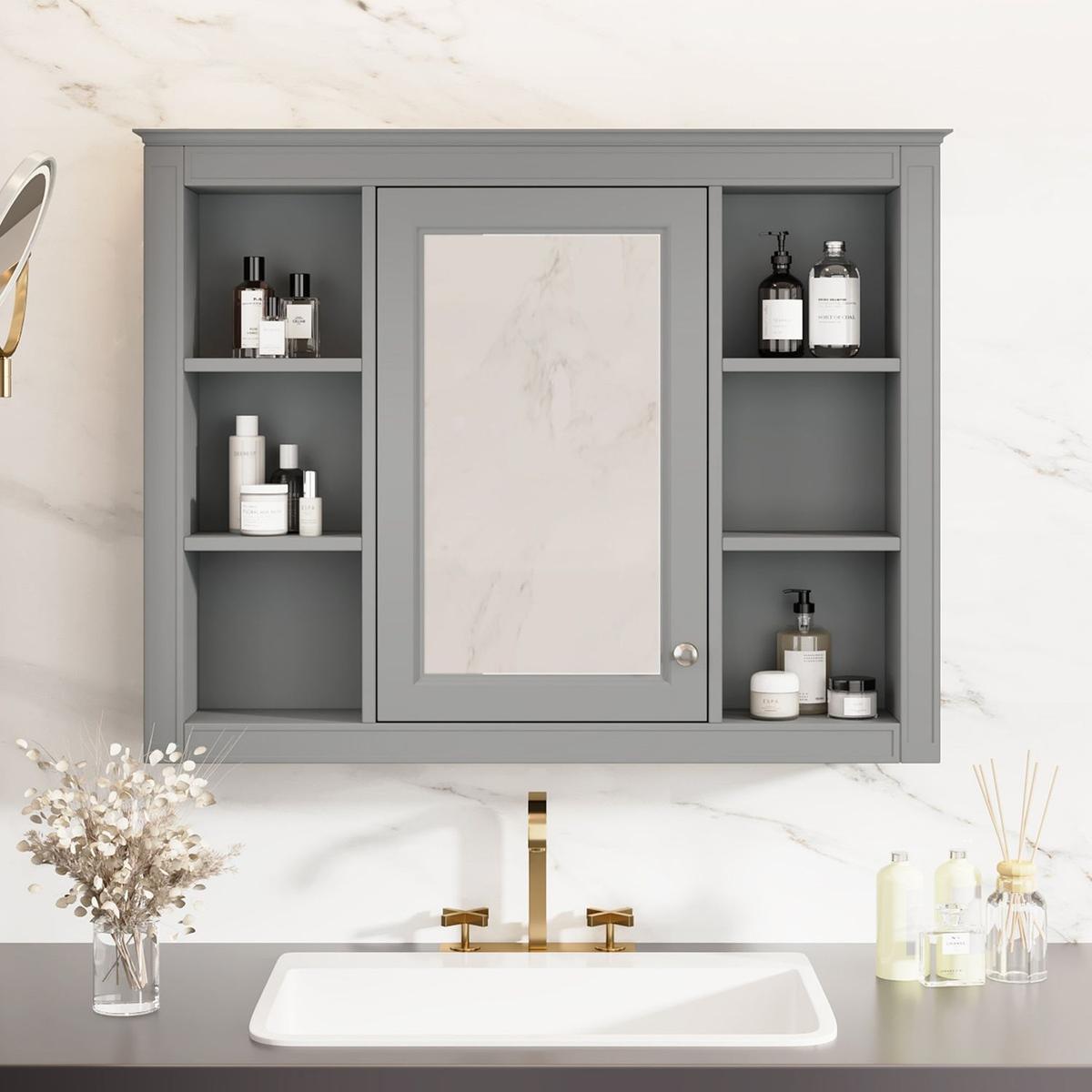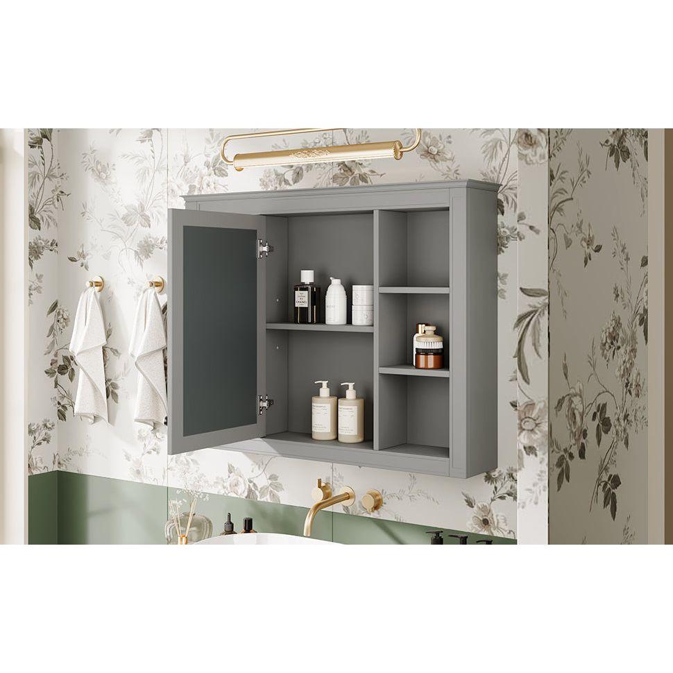 35" x 27.5" Medicine Cabinet, Wall Mounted Bathroom Storage Cabinet, Modern Bathroom Wall Cabinet with Mirror, Mirror Cabinet with 6 Open Shelves (Not Include Bathroom Vanity)