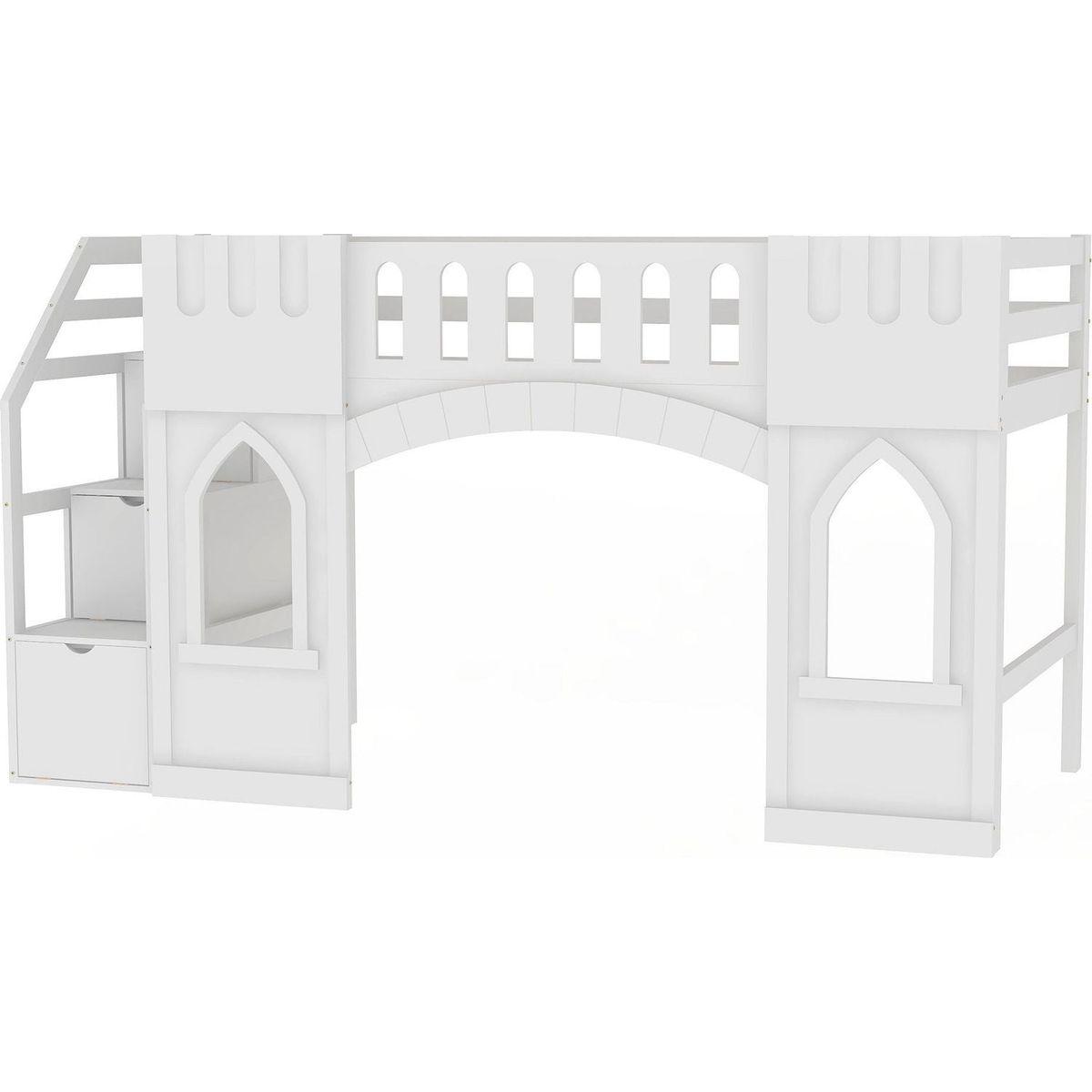 Twin Size Loft Bed with Storage Staircase and Window, White