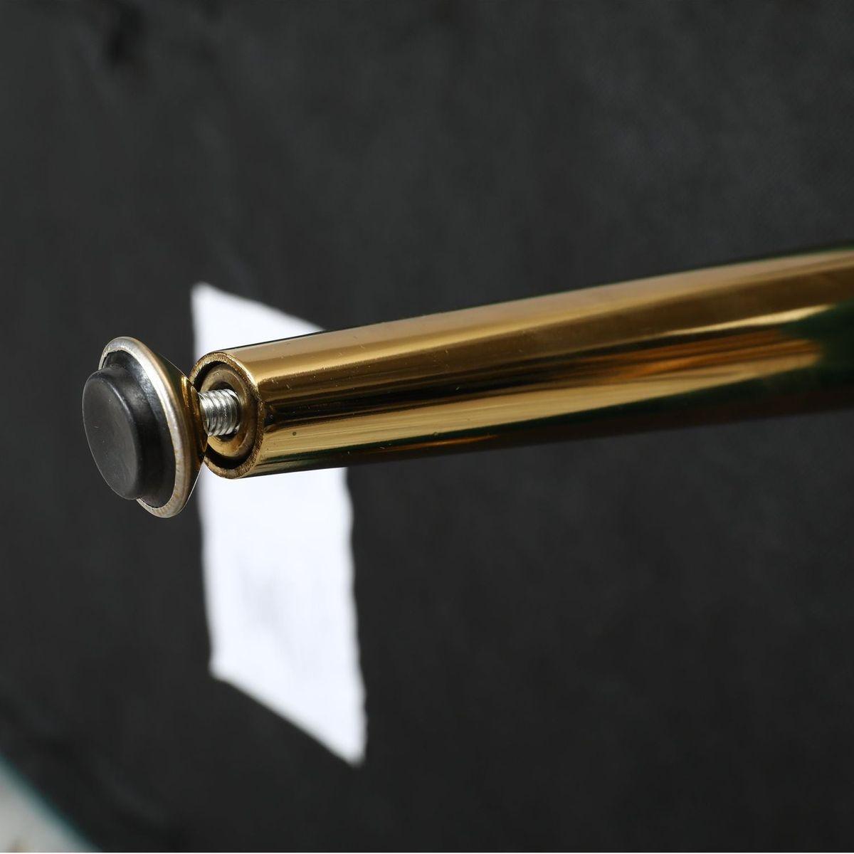 - The bench is supported by four metal legs finished in gold tone