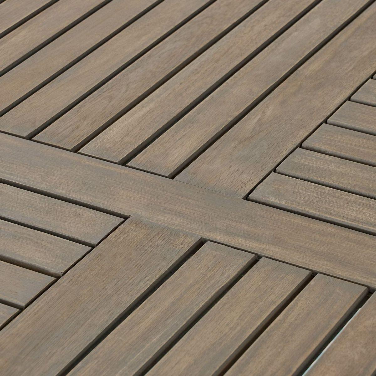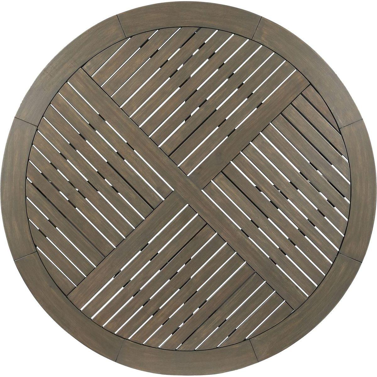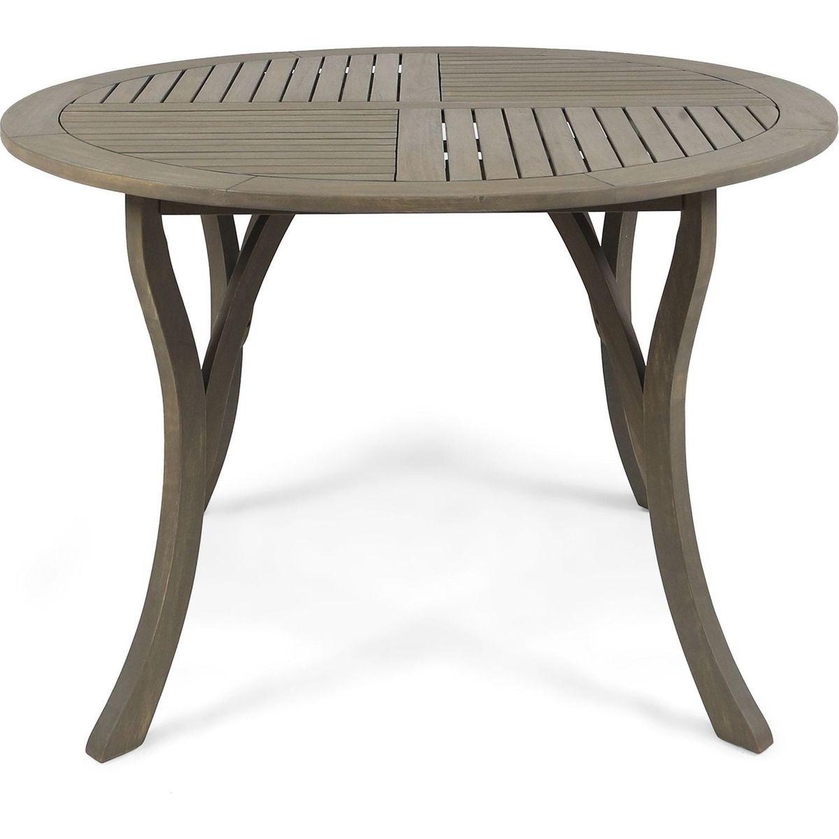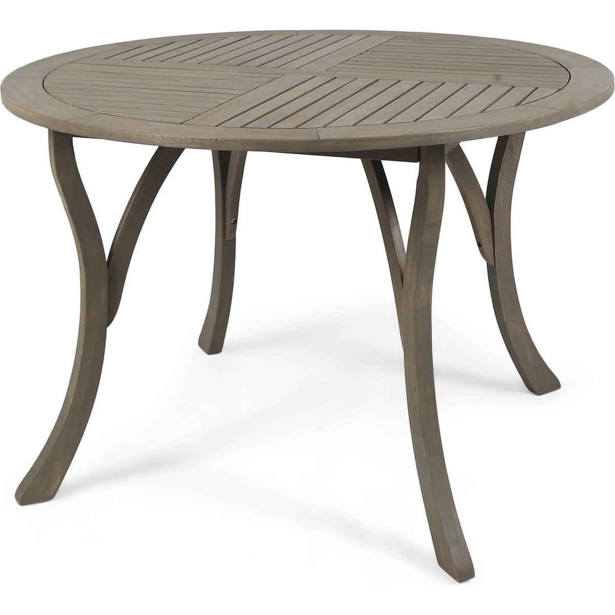 - Includes: One (1) Table. Material: Acacia Wood. Finish: Grey. Assembly Required