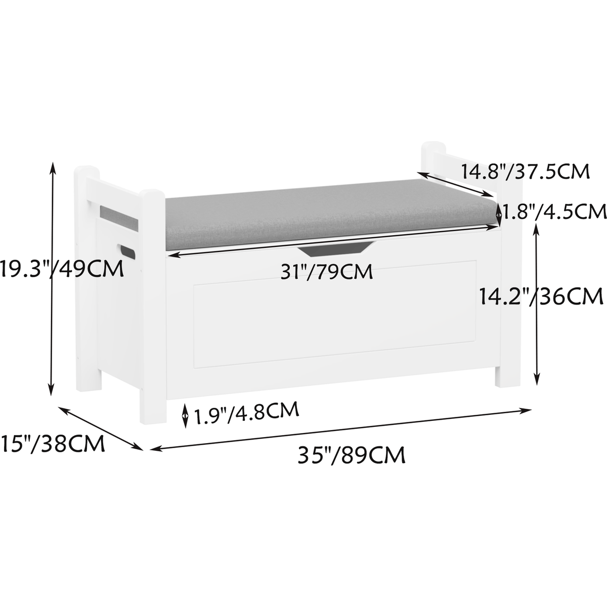 Kids Toy Box Chest, White Rubber Wood Toy Box for Boys Girls, Large Storage Cabinet with Cushion Seat Bench/Flip-Top Lid/Safety Hinge, Toy Storage Organizer Trunk for Nursery, Playroom