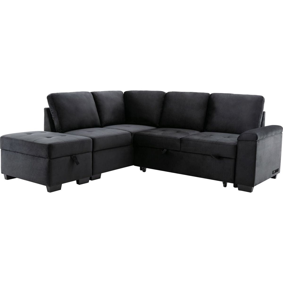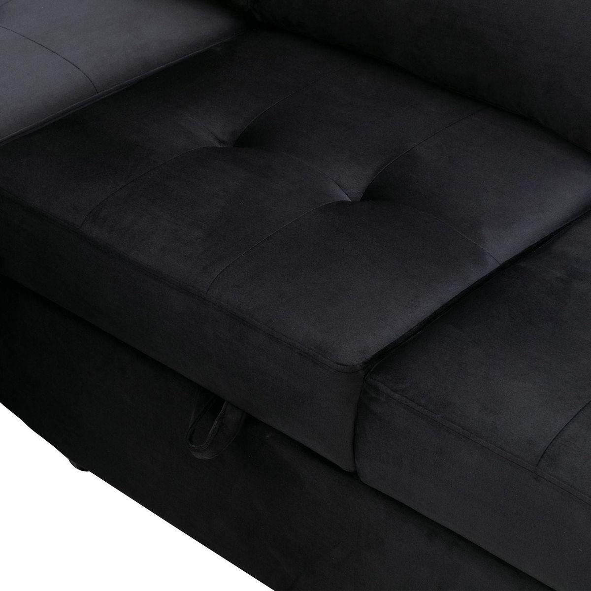 Sleeper Sectional Sofa, L-Shape Corner Couch Sofa-Bed with Storage Ottoman & Hidden Arm Storage & USB Charge for Living Room Apartment, Black