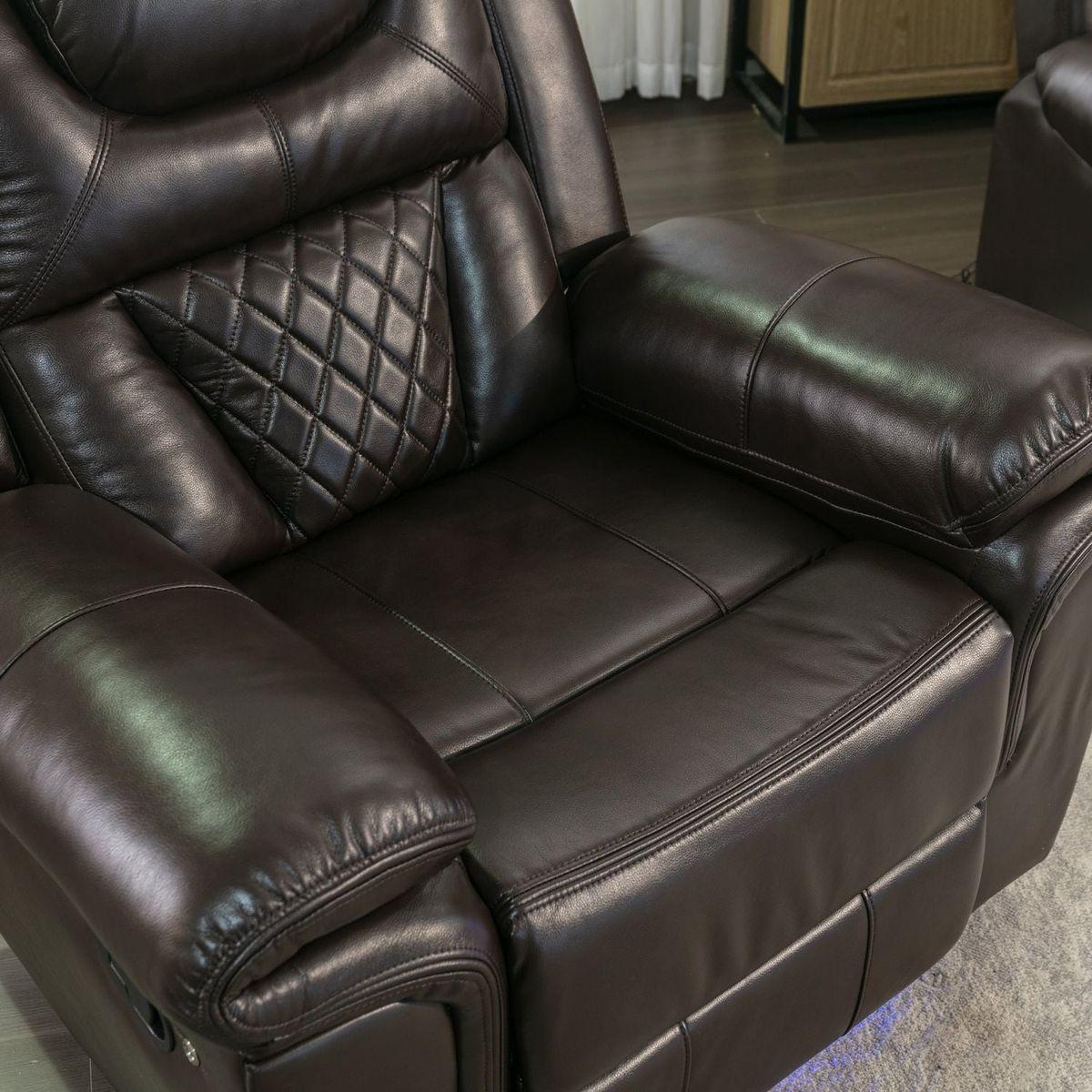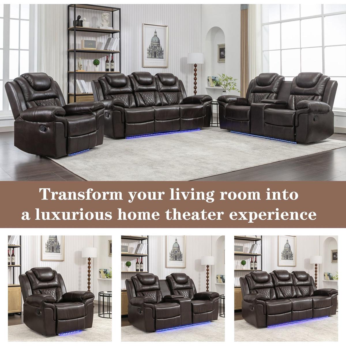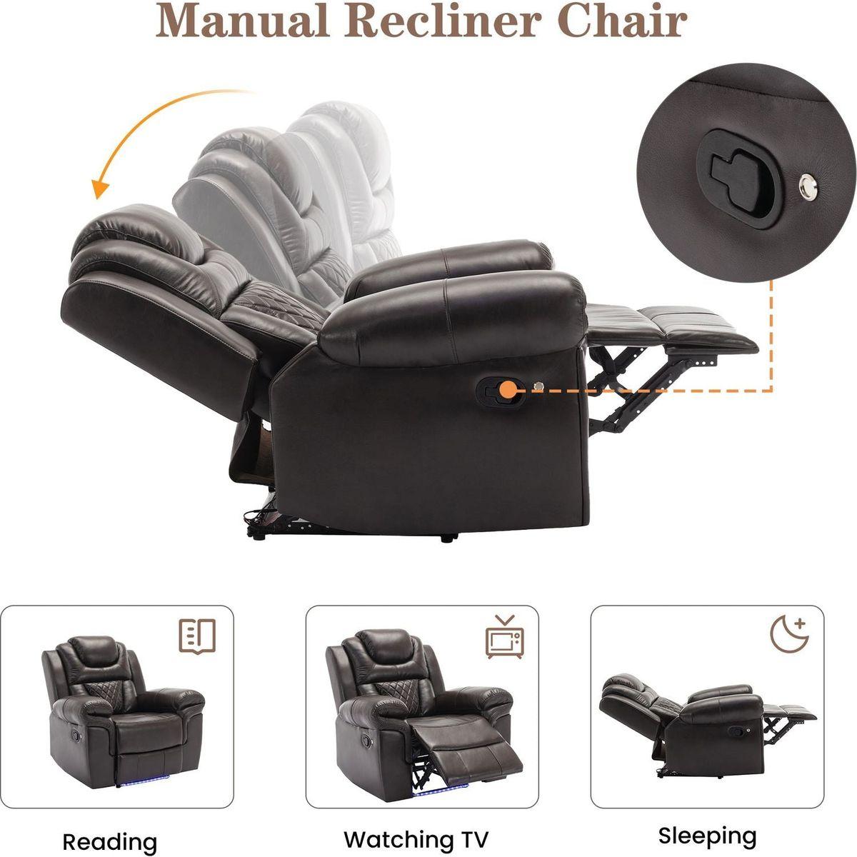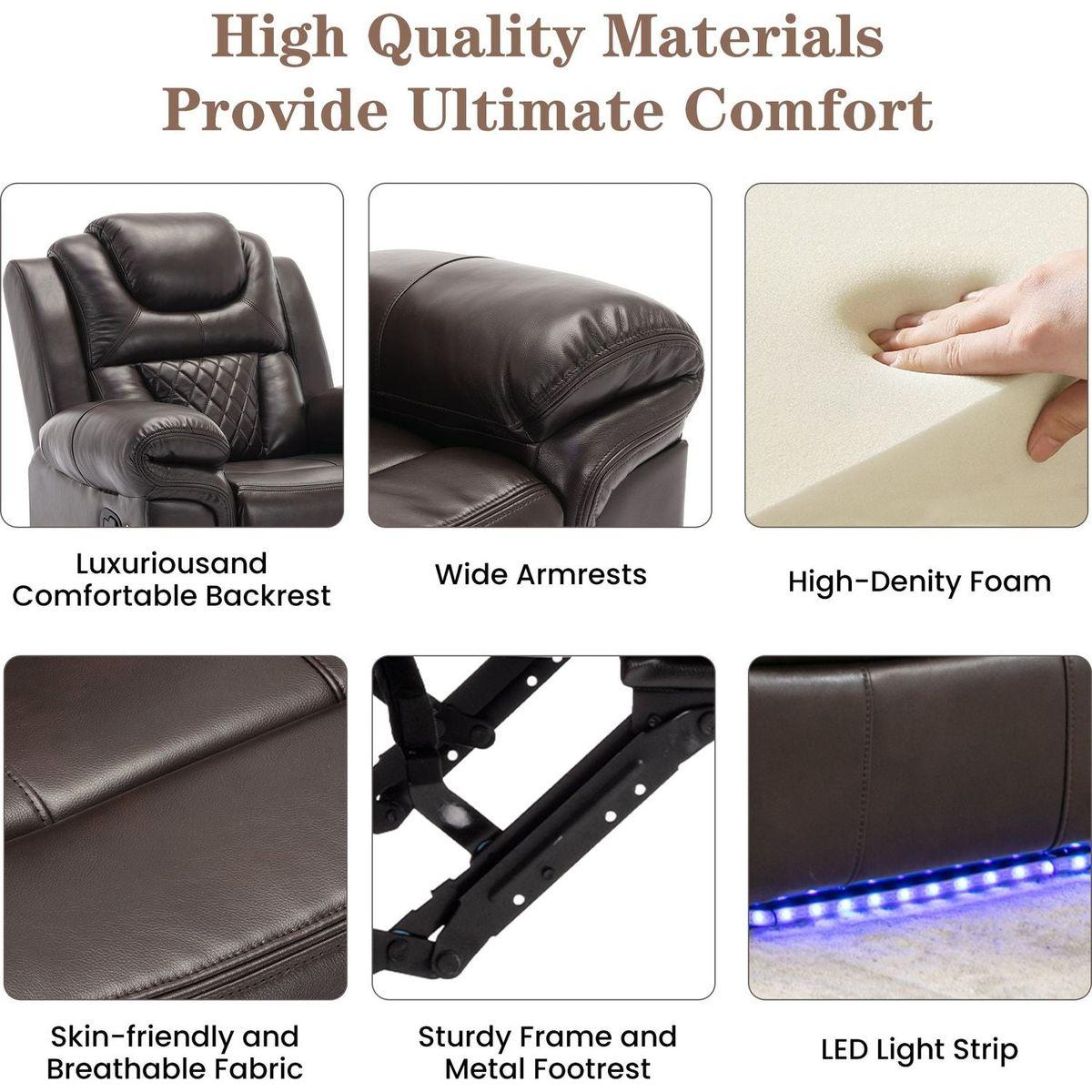 Home Theater Seating Manual Recliner Chair with LED Light Strip for Living Room,Bedroom, Brown
