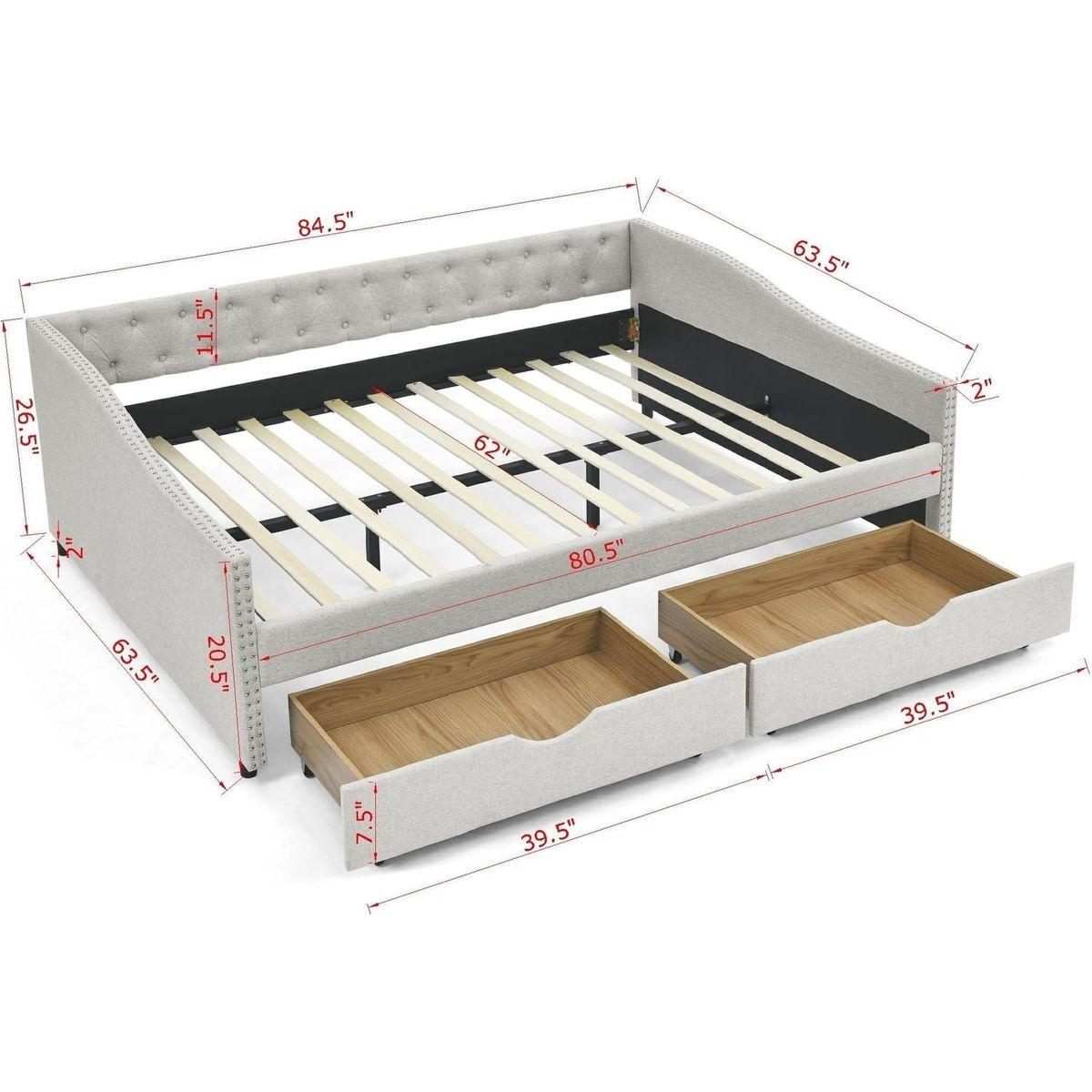 - [Overall size] 84.5"x63.5"x26.5" Daybed Size: 80x60 inches Drawer size : 33.6x20x5.5 inches No Mattress Included.
