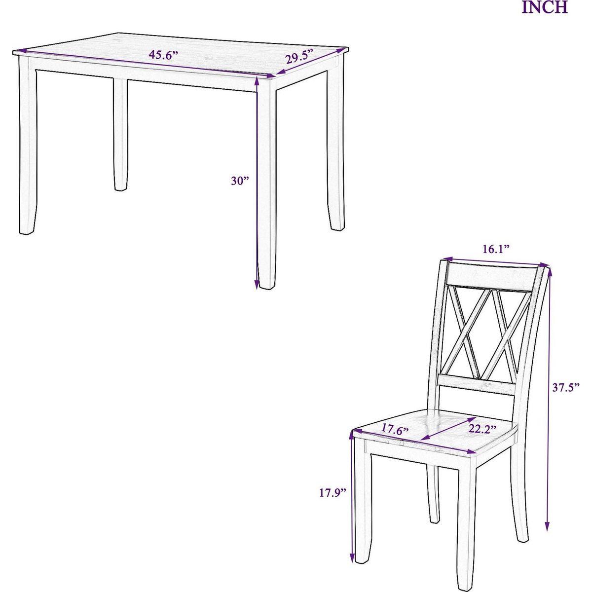 - [Dimension&Warranty] This dining set includes 1 table and 4 chairs. Table size: 45.6" x 29.5" x 30" (L x W x H); Chair size: 17.6" x 22.2" x 37.5" (L x W x H) ; Table weight capacity: 250lbs; Single chair weight capacity: 250lbs. If any issues, please feel free to contact us.