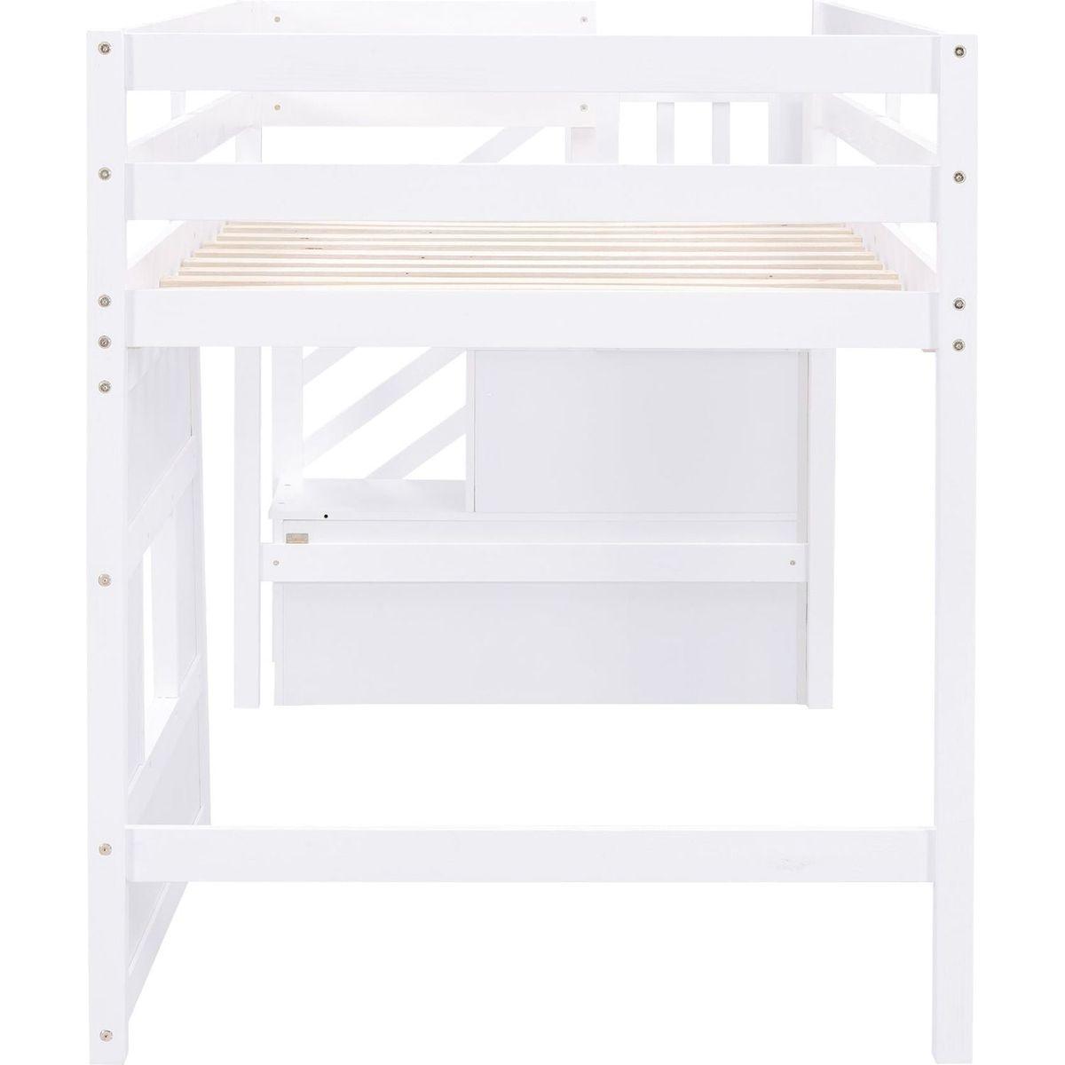 Twin Size Loft Bed with Storage Staircase and Window, White