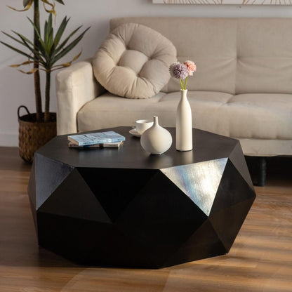 38"Three-dimensional Embossed Pattern Design American Retro Style Coffee Table,Black Tabletop