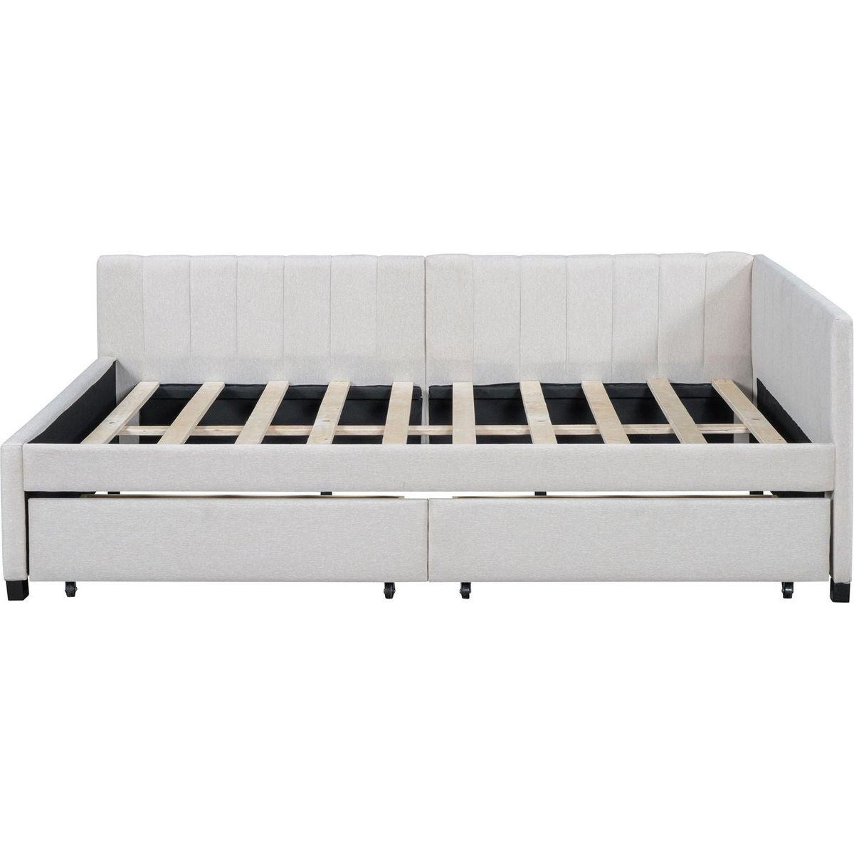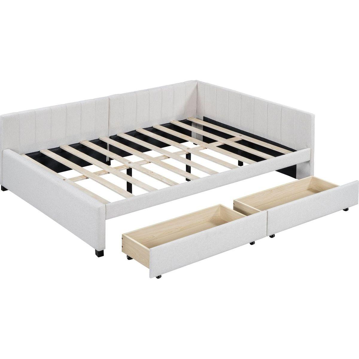 Full Size Upholstered Daybed with 2 Storage Drawers Sofa Bed Frame No Box Spring Needed, Linen Fabric (Beige)