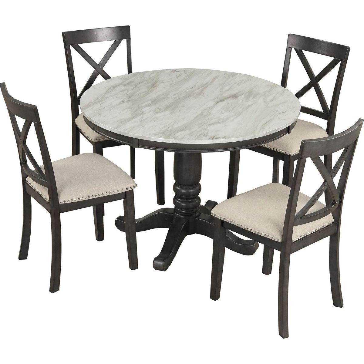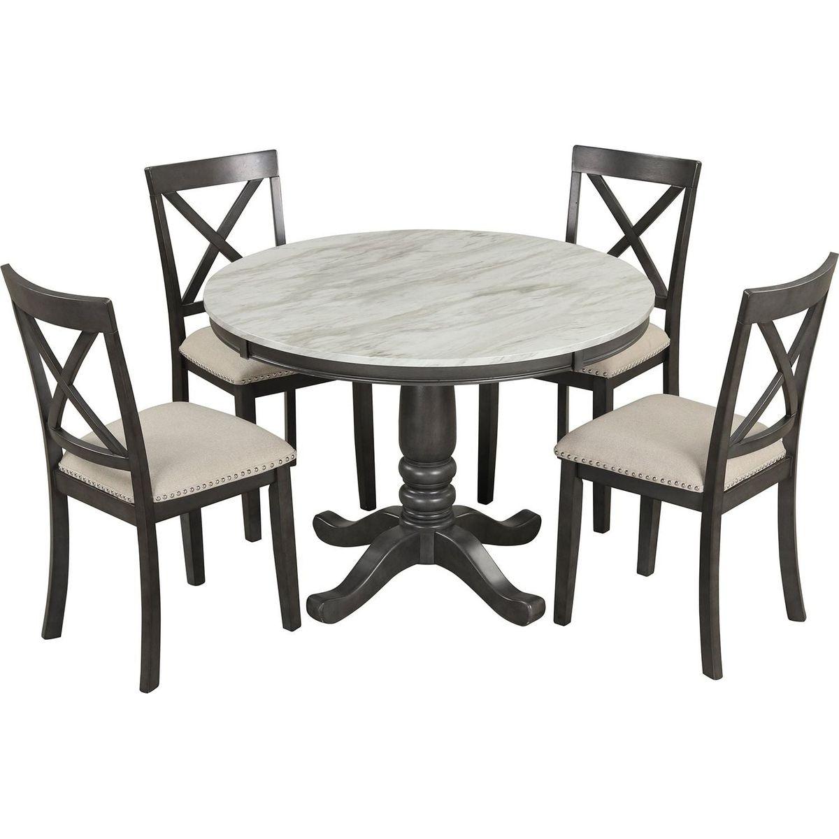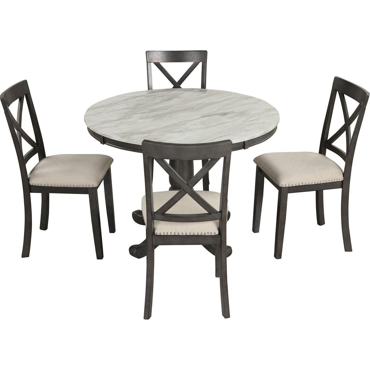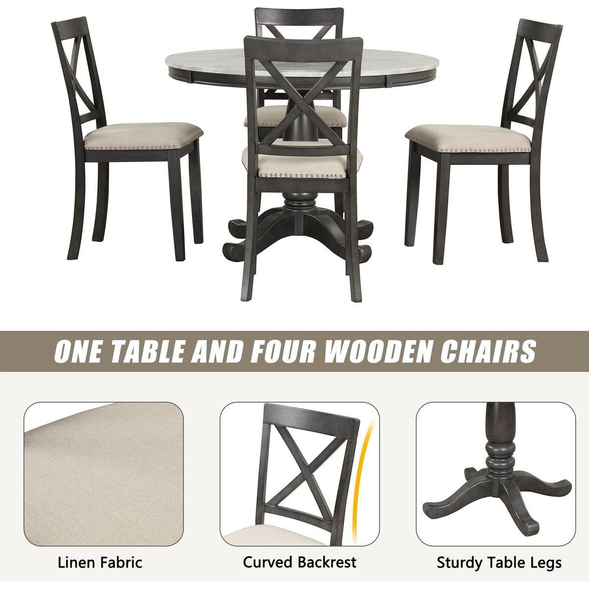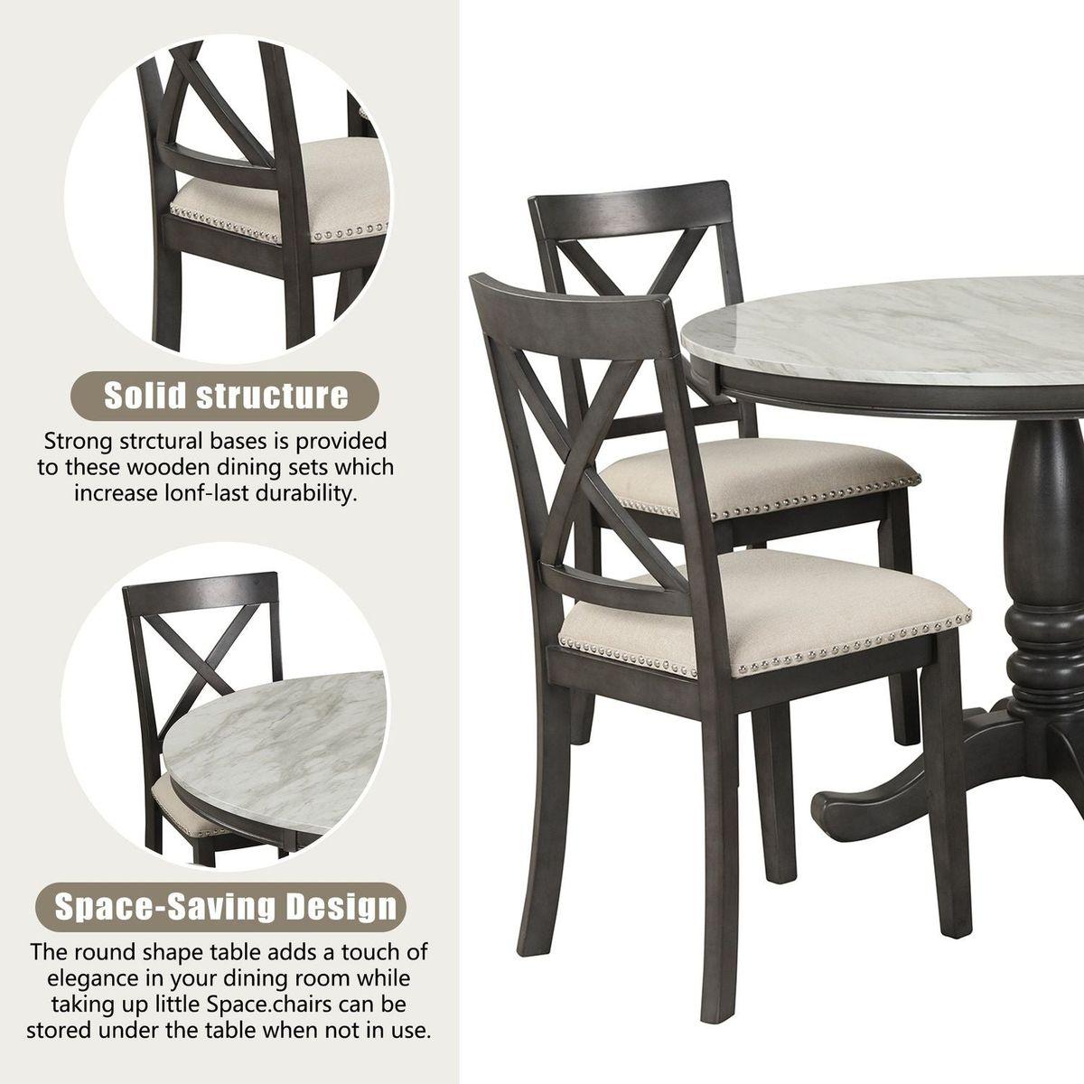5 Pieces Dining Table and Chairs Set for 4 Persons, Kitchen Room Solid Wood Table with 4 Chairs