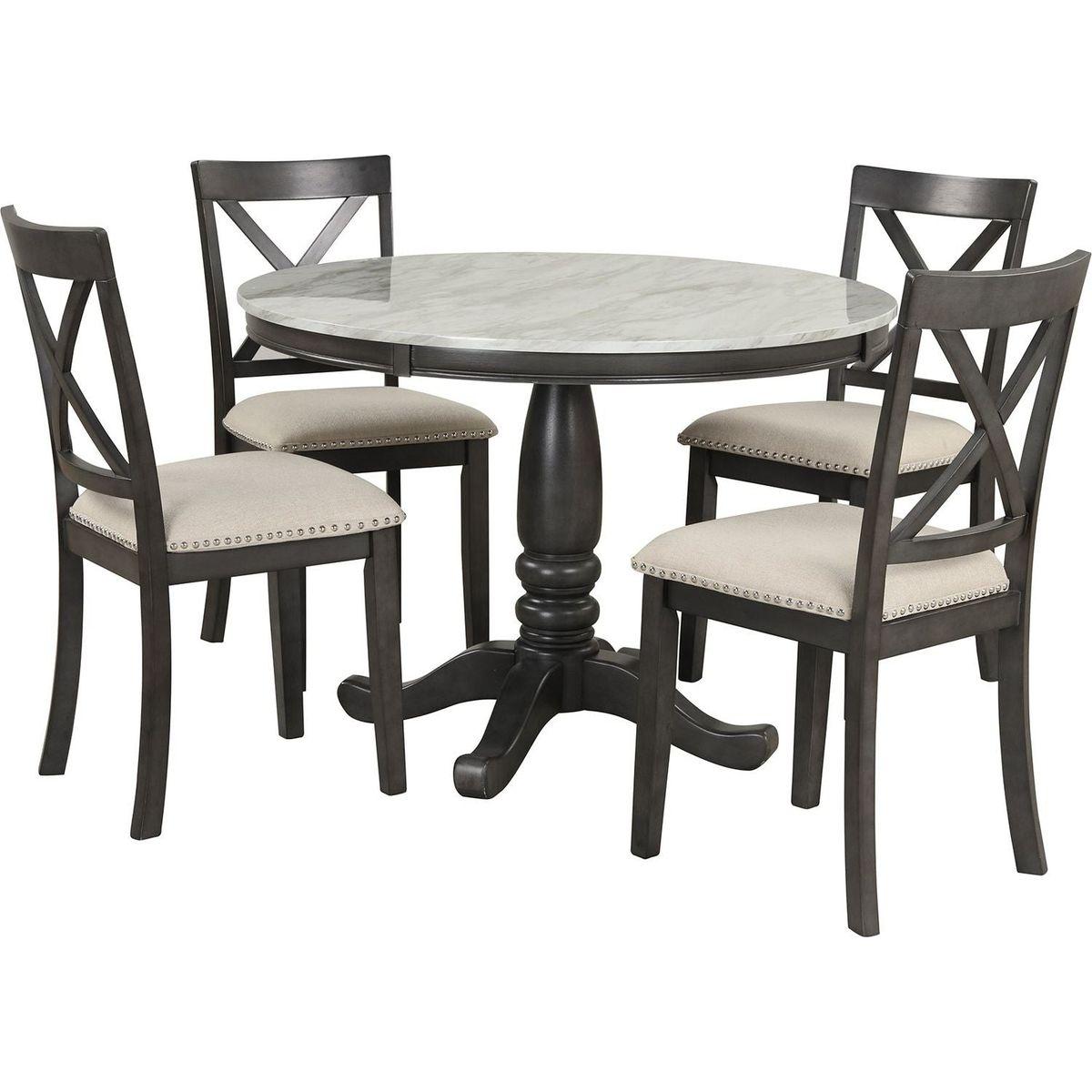 This Gray Solid Wood Dining and Kitchen Set is absolutely beautiful! It is well made and looks great in my dining room.