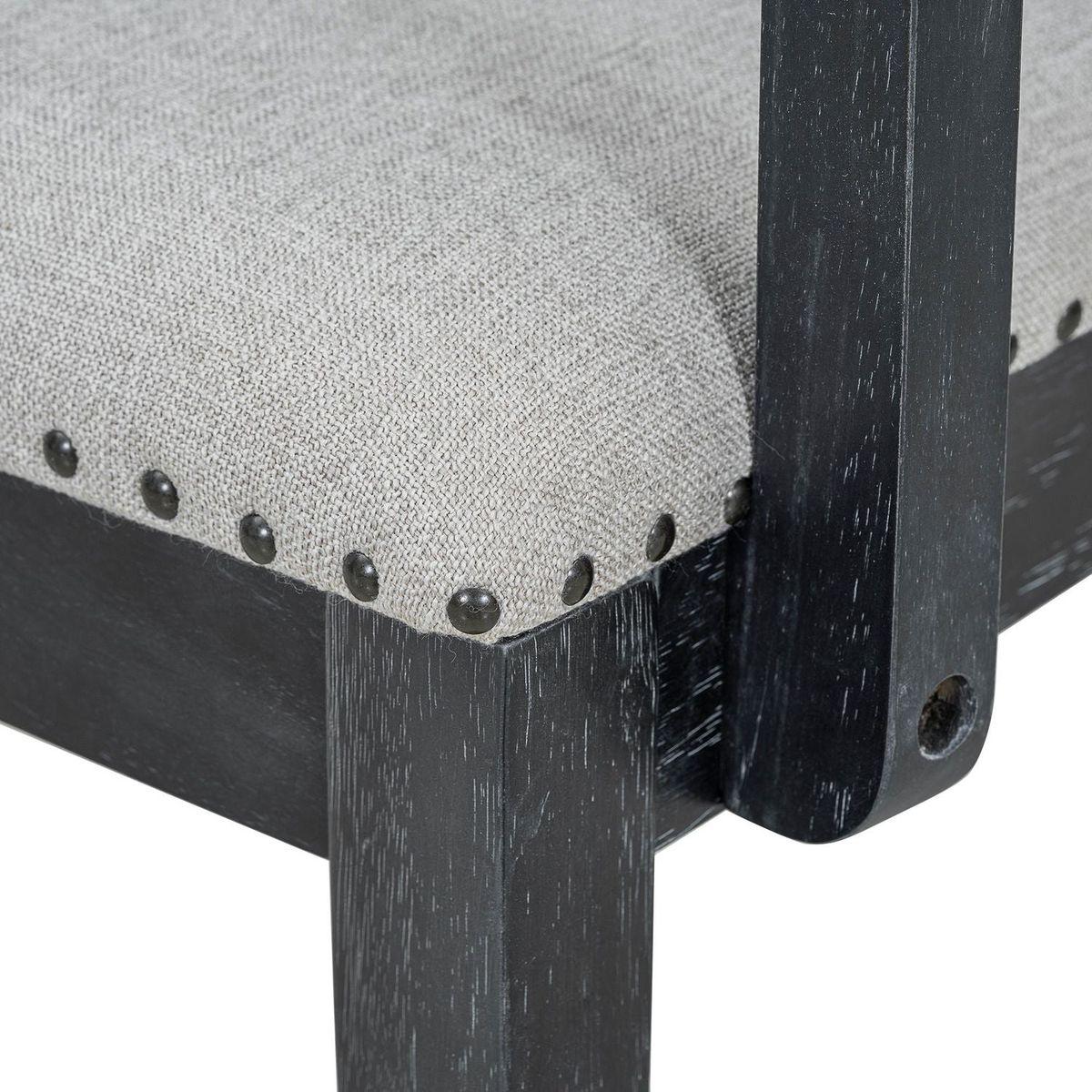 | Material | Tabletop: MDF+acacia wood veneer;Table frame: rubber wood; Chair Cushion:linen fabric+foam;Chair frame: rubber wood; Antique brass nail head trim |