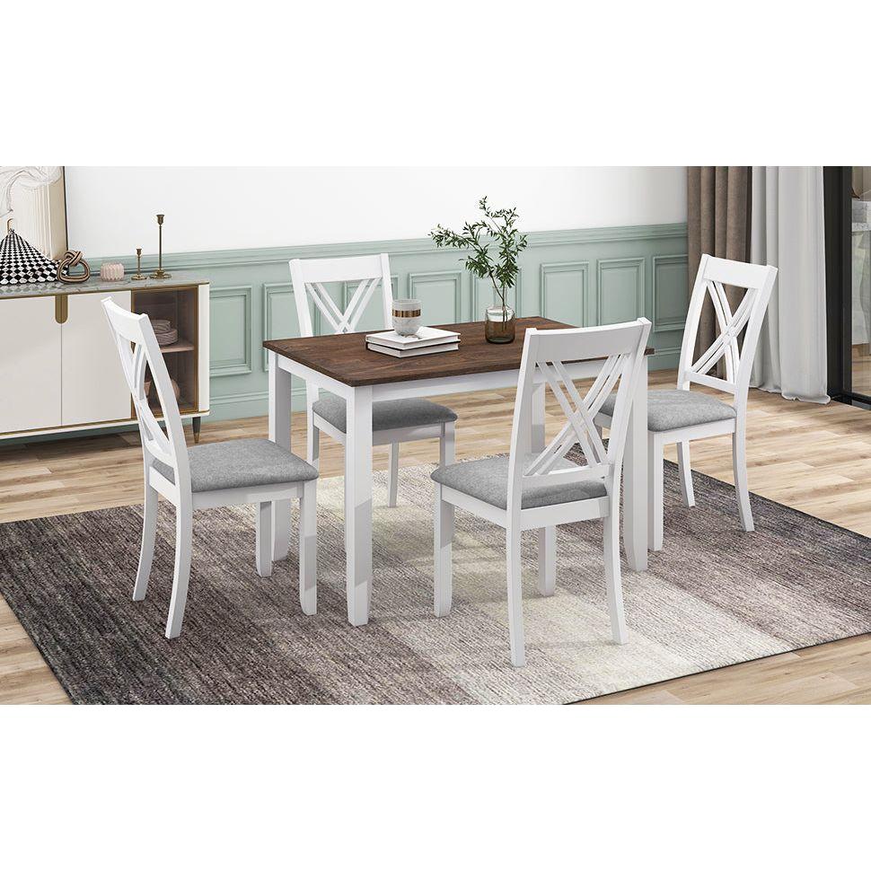 Two Colors Option // Rectangular Table // Solid Wood // X-Back // Upholstered Cushion // Dining Set for 4// 12-Month Warranty