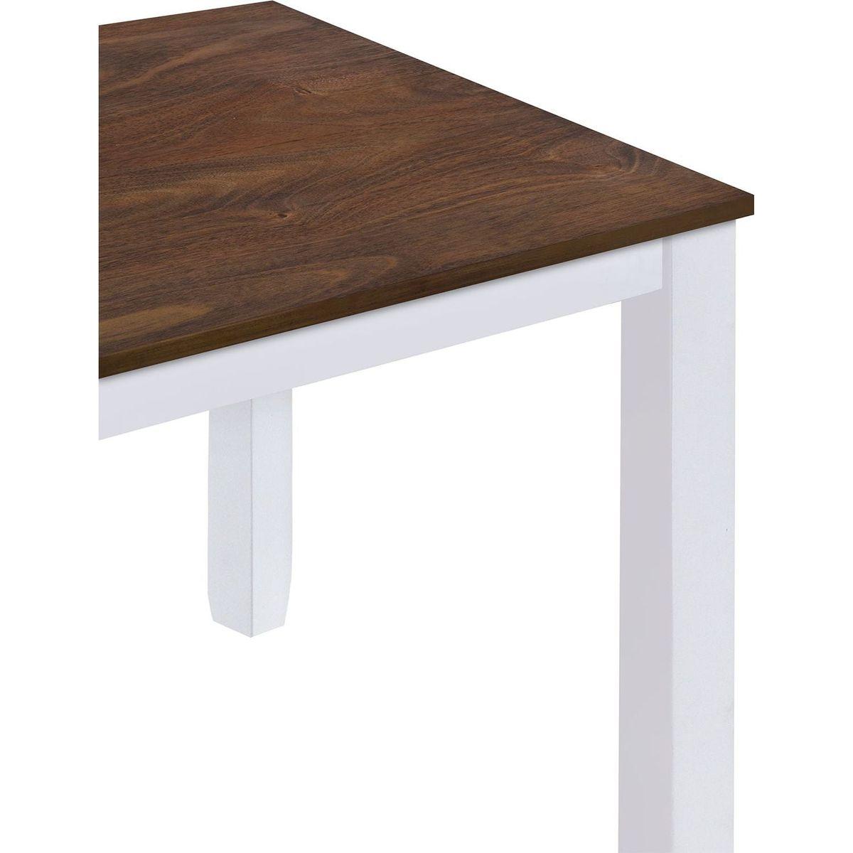 The table is made MDF top with rubberwood legs which will hold 250lbs capacity. Chair includes rubberwood frame as well as linen fabric and foam pad which will hold 250lbs for each one. All of them will meet the daily dining requirement easily.