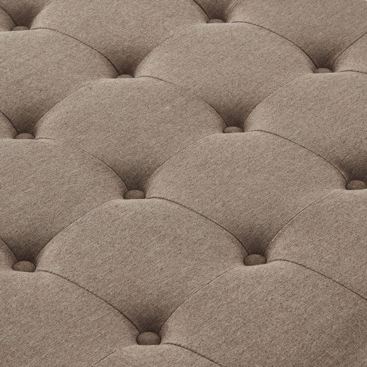 Large square storage ottoman with wooden legs, Upholstered button tufted coffee table with nail trims for for Living Space,Linen