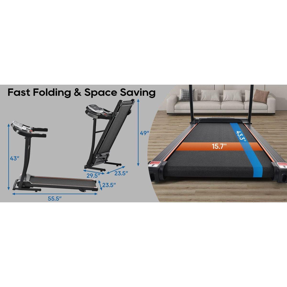 NEW Home Folding Treadmill with Pulse Sensor, 2.5 HP Quiet Brushless Motor, 7.5 MPH, 300LBS Weight Capacity Walking Jogging Machine with 3 Level Incline 12 Preset Programs for Home Gym