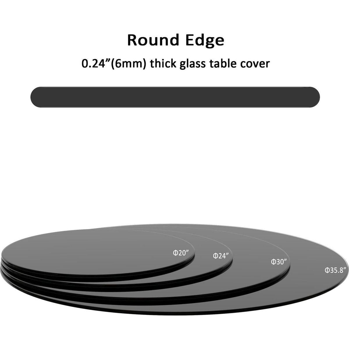 - 1 Product Size: 24*24*0.24", thick round polished edge glass, 1/4" inch thick glass.