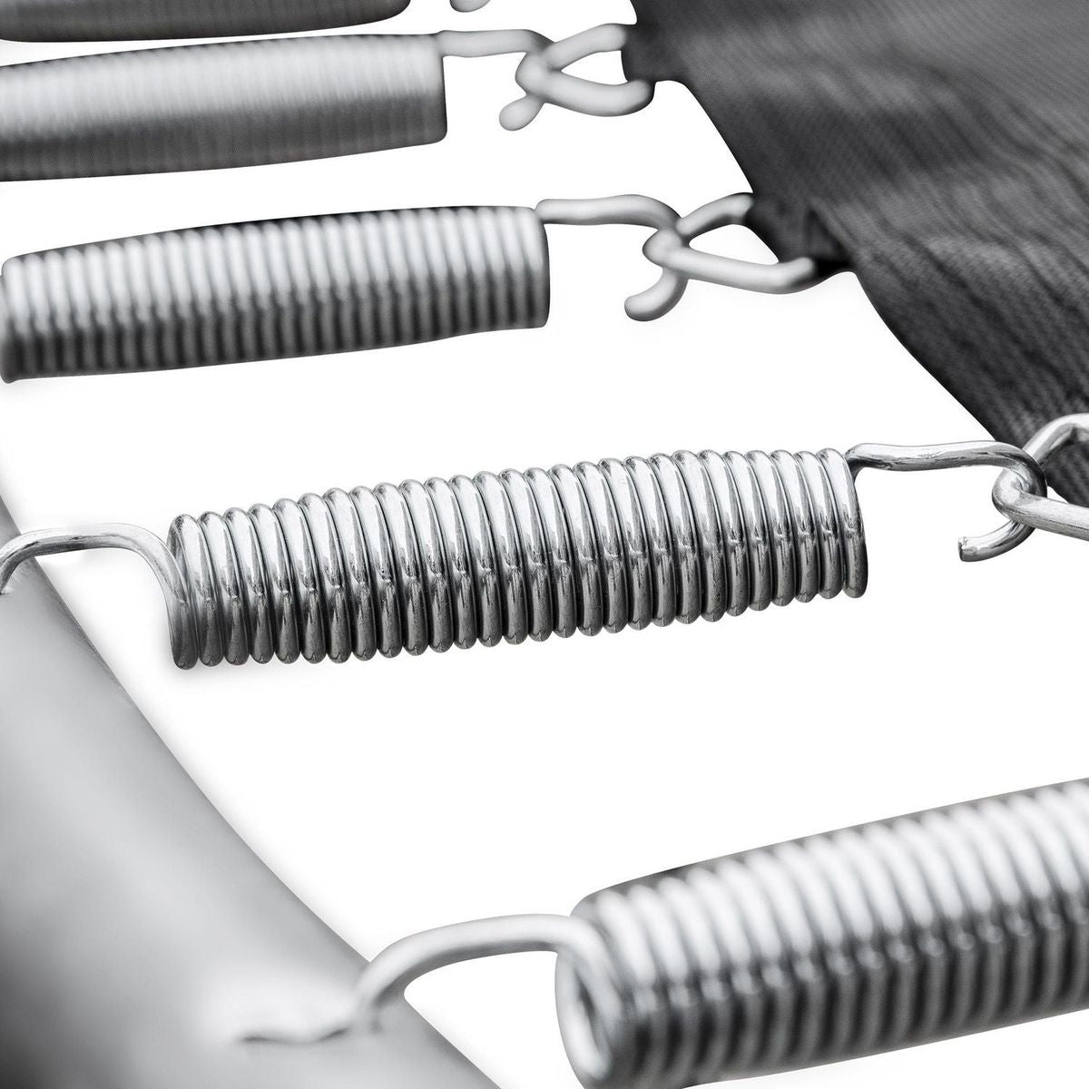 Premium Bouncing Experience - High-strength trampoline mat woven together that able to handle constant flexing, making it durable and soft on your feet. 72 galvanized springs evenly stretched around the mat ensure a smooth and responsive bounce.