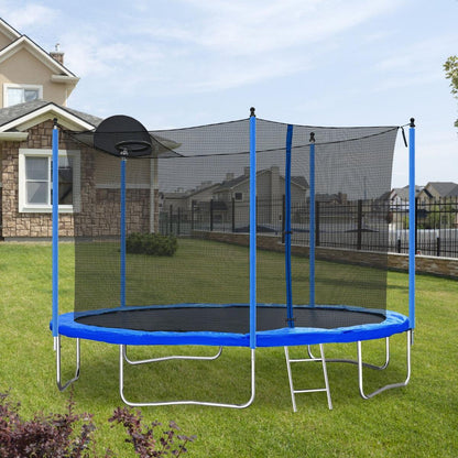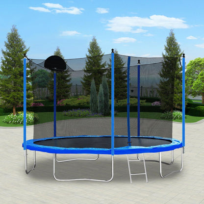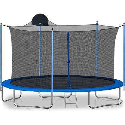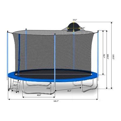 Safeseal System - This 12FT trampoline with enclosures feature a 360-degree safety net that is securely attached to the jumping mat all the way around, reducing the risk of an arm or leg falling through. A full enclosure with a zipper door surely lends you peace in mind.