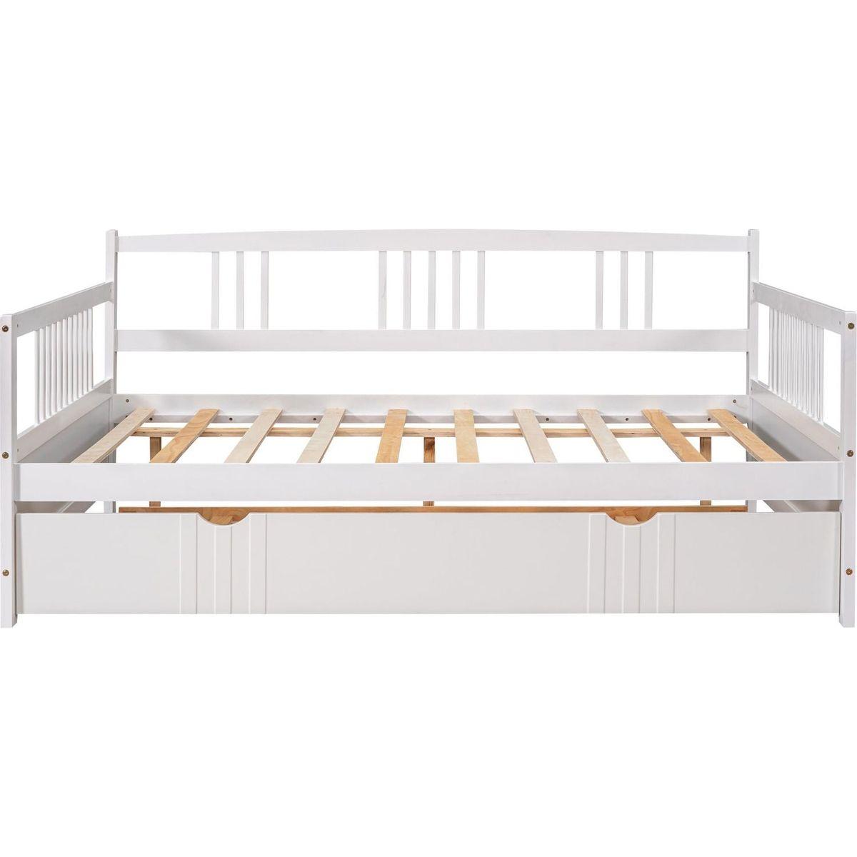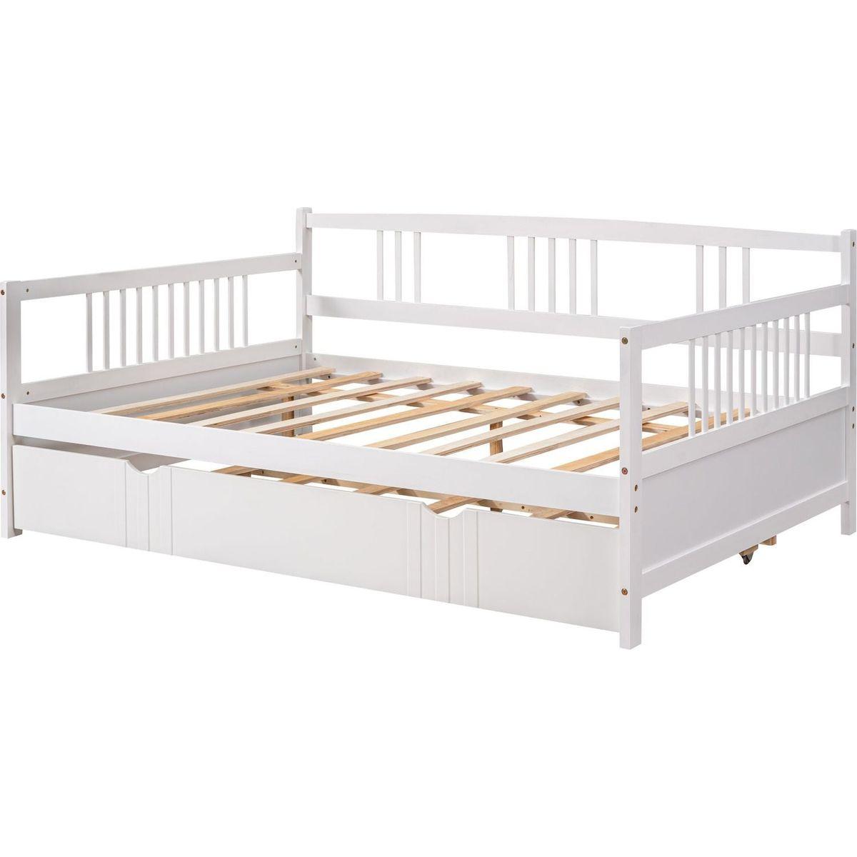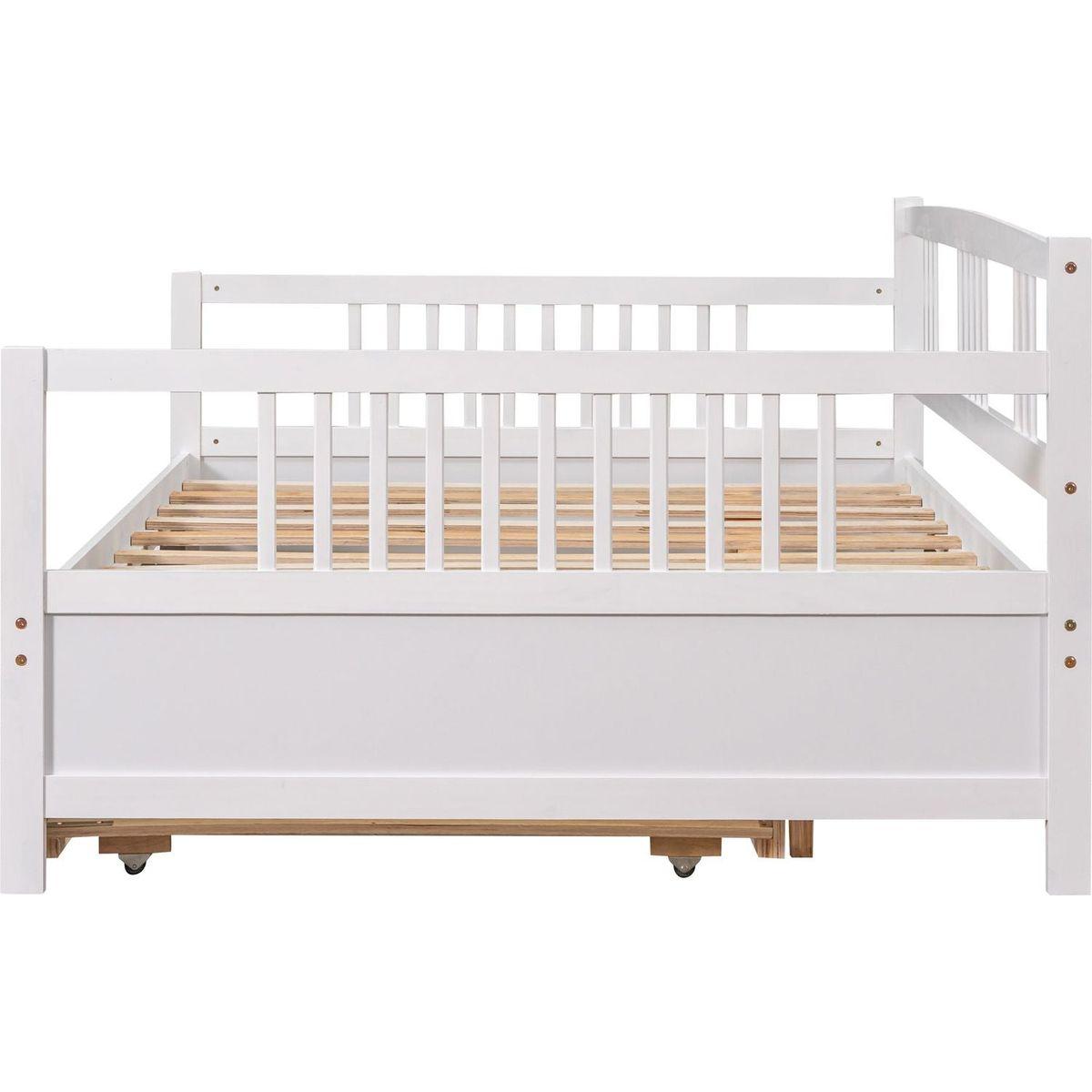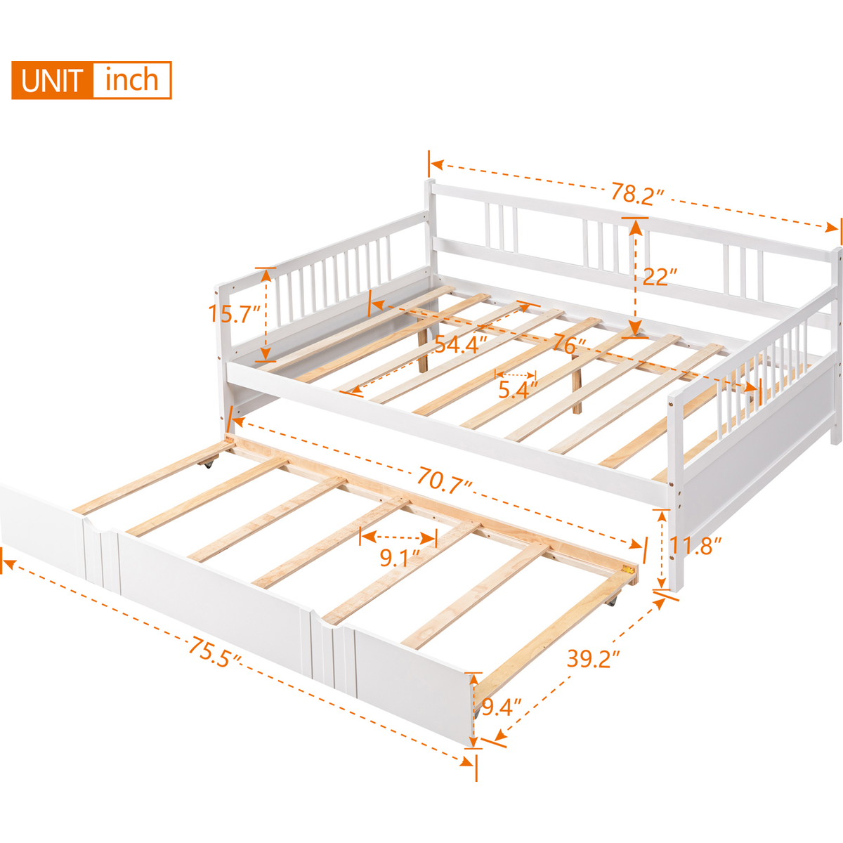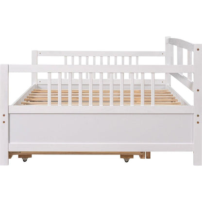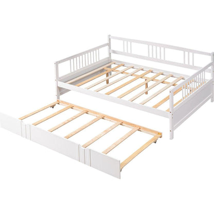 Full Size Daybed Wood Bed with Twin Size Trundle, White