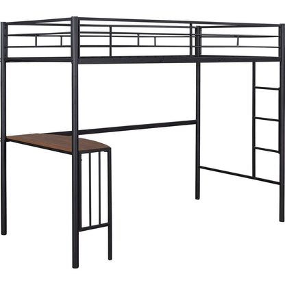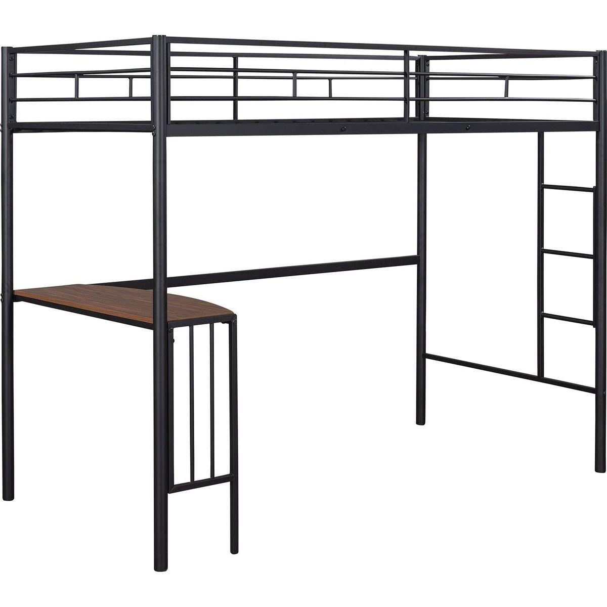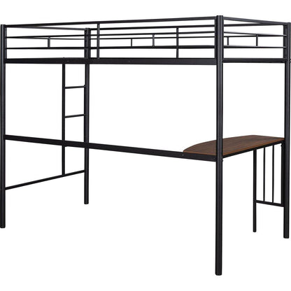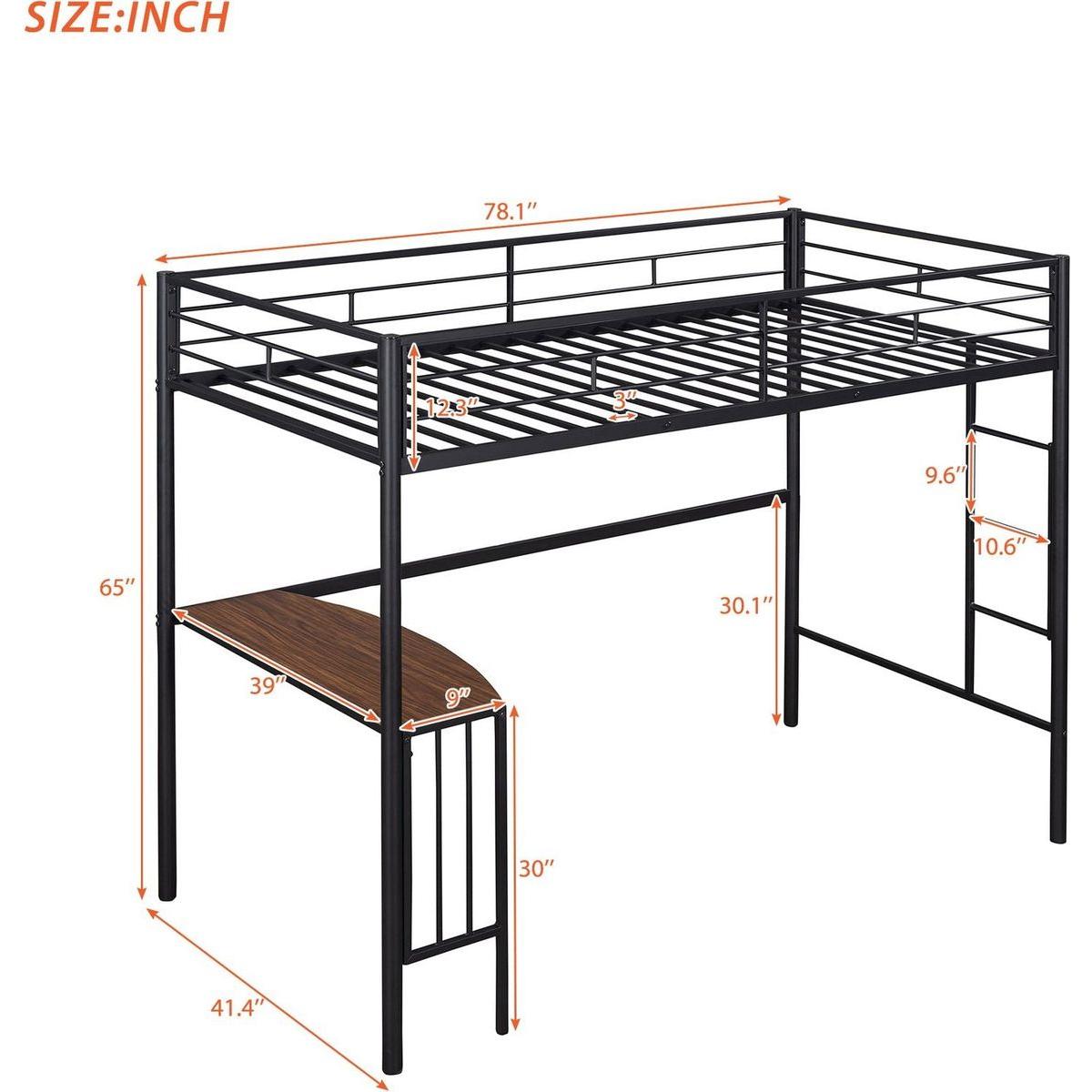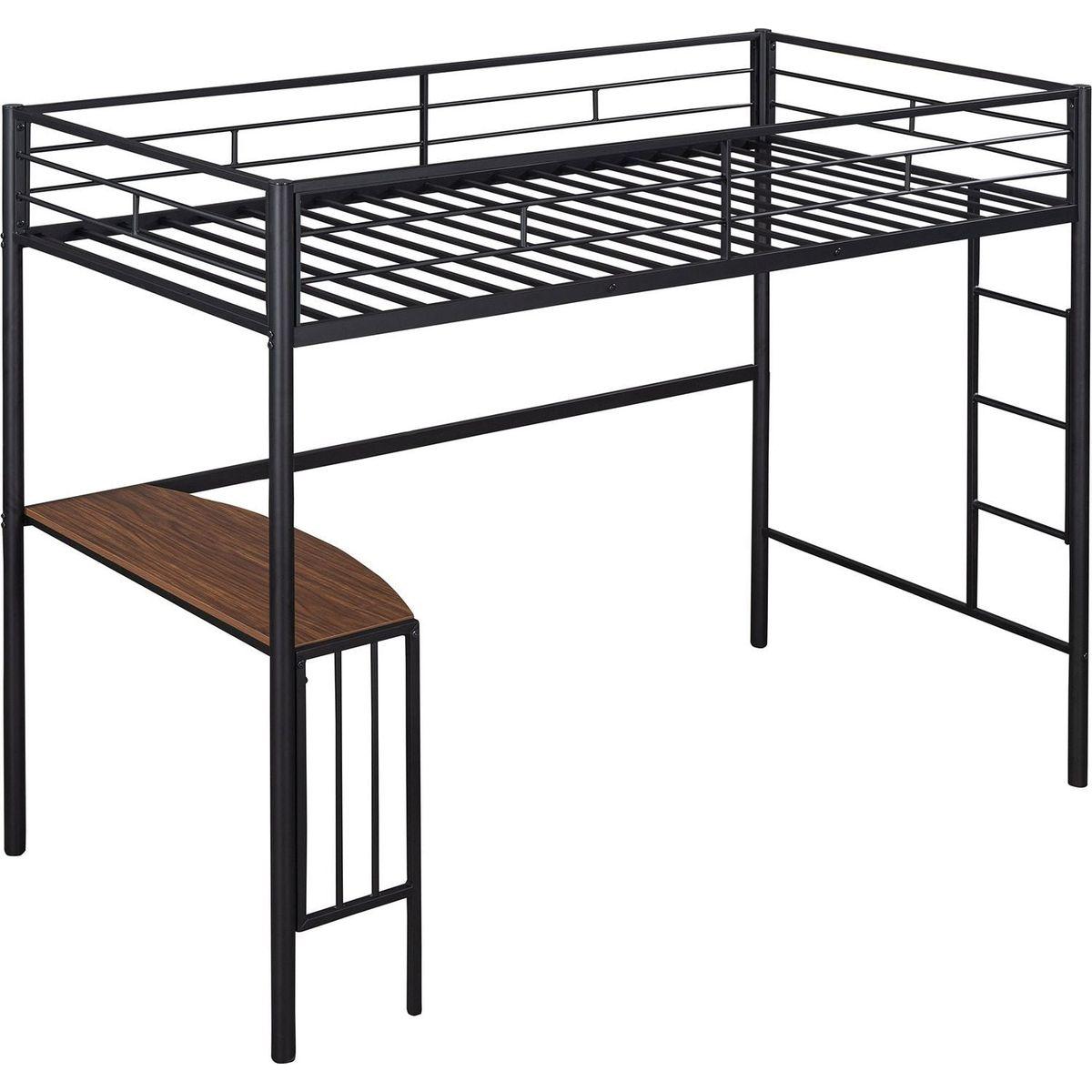 A simple yet appealing fusion of style and practicality, this metal loft bed is designed to bring yourabode extra sleeping space without excessively encroaching on the limited floor space compact rooms, all at an affordable price. Ideal for small bedrooms, the extra space underneath the loft bed creates a semi-enclosed area and allowing your family to have their own space that they can customize and decorate as their own. With a surface manufactured from solid MDF, the build-in desk is sturdy enough to withstand heavy loads from textbooks to décor. The metal frame construction finished in a powder coating has heightened durability to resist against rusting, erosion, scratches, and supports up to 250 lbs. Upper metal slats are built-in and offer solid support and prevent untimely mattress sagging. Designed for easy assembly, quickly put your bed frame together with the user-friendly instruction manual included.