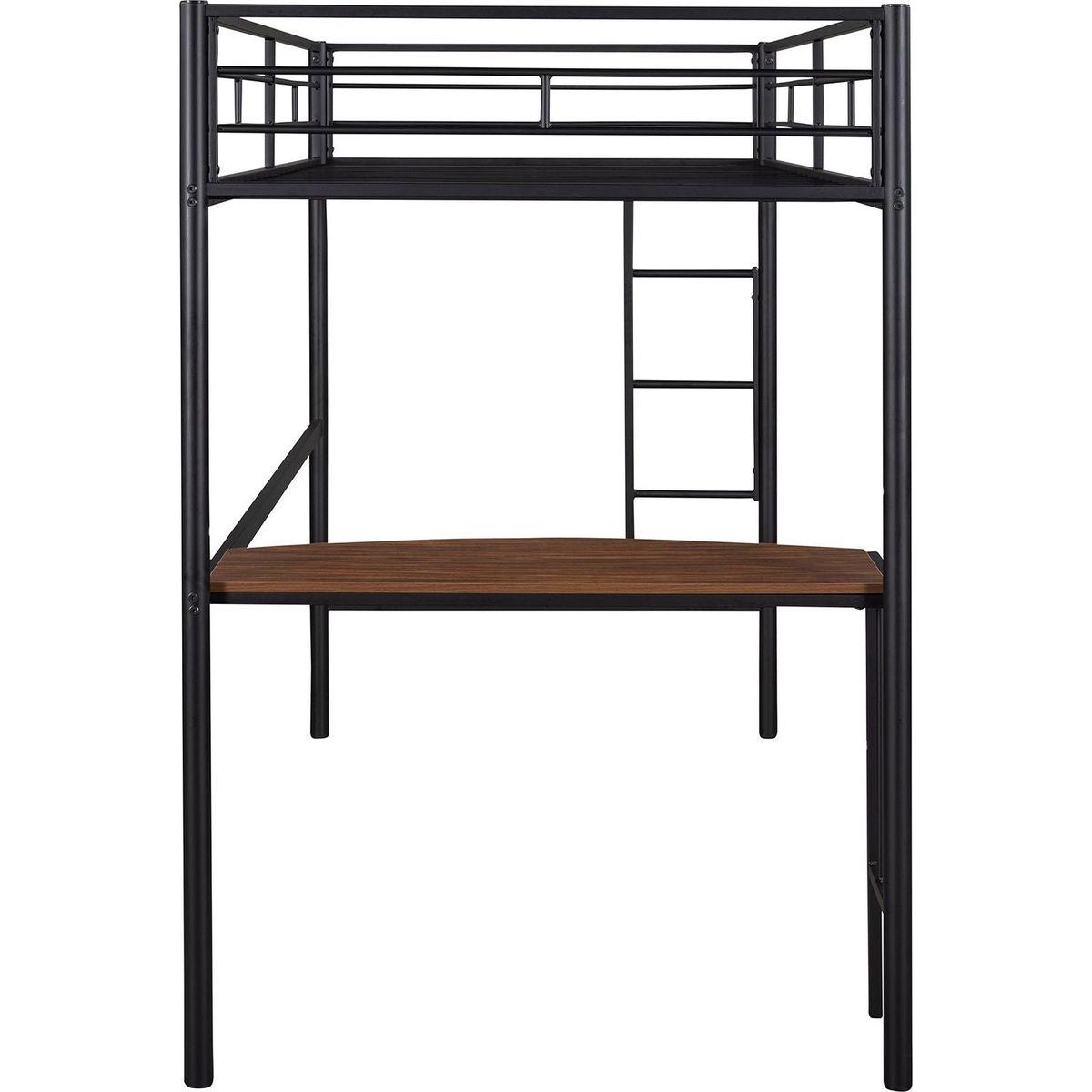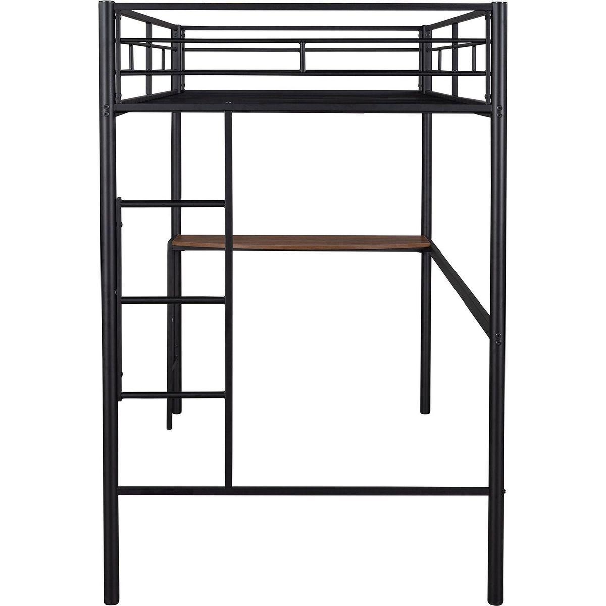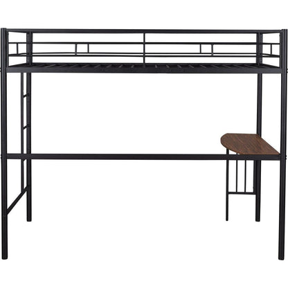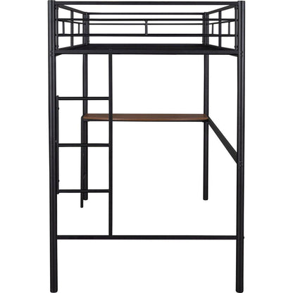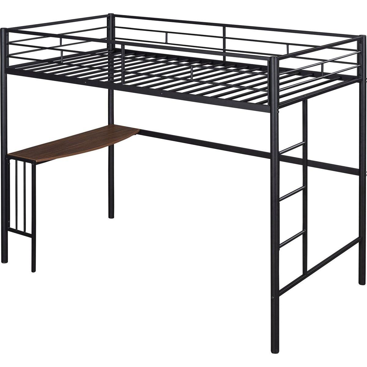 A simple yet appealing fusion of style and practicality, this metal loft bed is designed to bring yourabode extra sleeping space without excessively encroaching on the limited floor space compact rooms, all at an affordable price. Ideal for small bedrooms, the extra space underneath the loft bed creates a semi-enclosed area and allowing your family to have their own space that they can customize and decorate as their own. With a surface manufactured from solid MDF, the build-in desk is sturdy enough to withstand heavy loads from textbooks to décor. The metal frame construction finished in a powder coating has heightened durability to resist against rusting, erosion, scratches, and supports up to 250 lbs. Upper metal slats are built-in and offer solid support and prevent untimely mattress sagging. Designed for easy assembly, quickly put your bed frame together with the user-friendly instruction manual included.