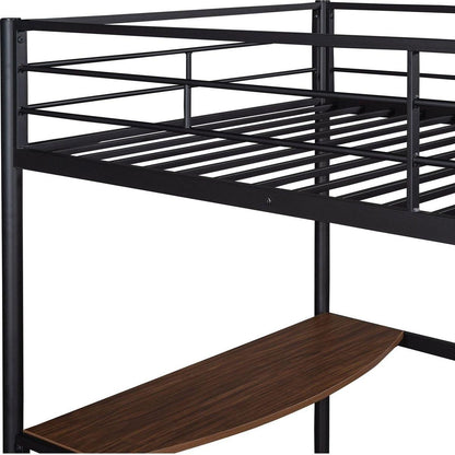 Twin Metal Bunk Bed with Desk, Ladder and Guardrails, Loft Bed for Bedroom, Black