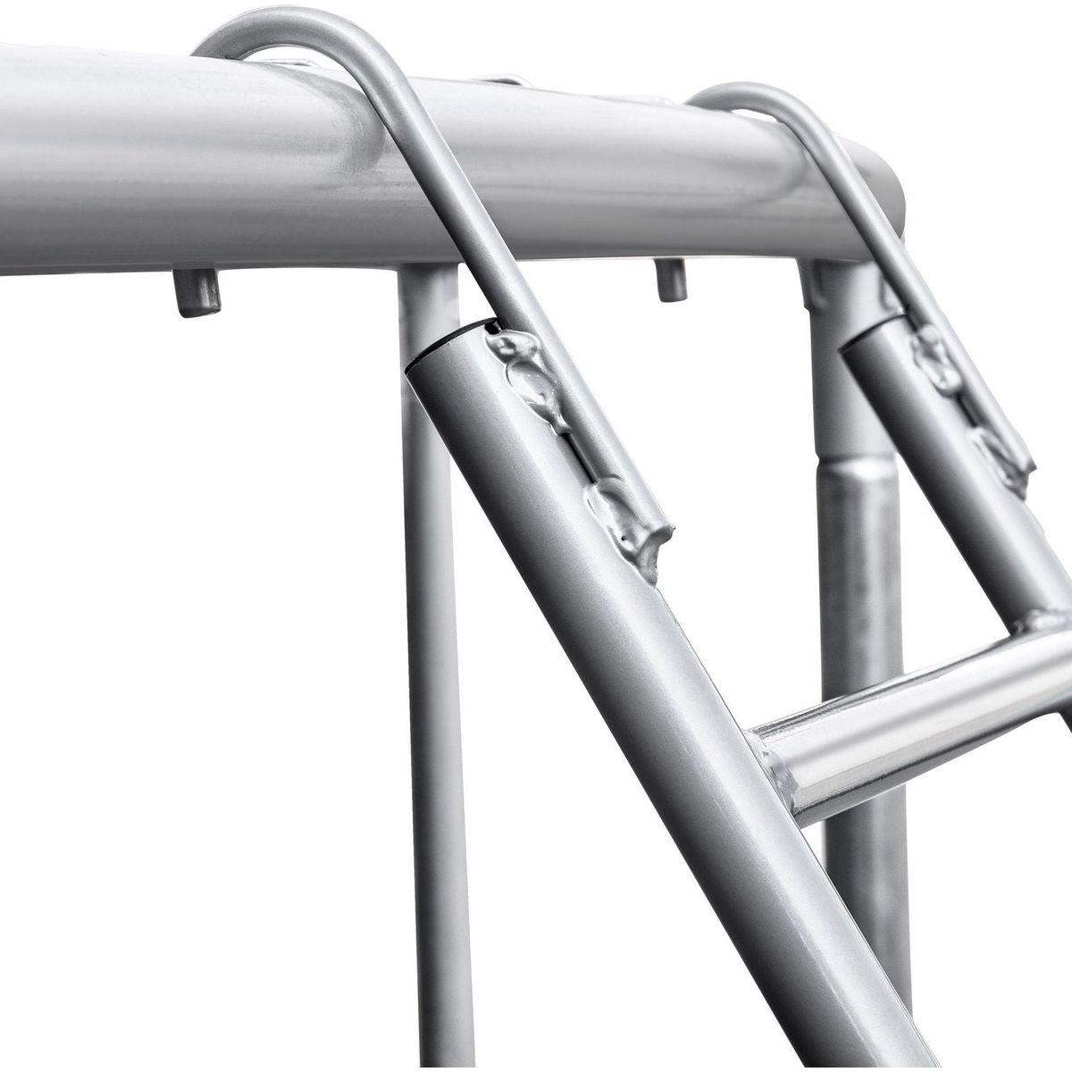 Safeseal System - This 16FT trampoline with enclosures feature a 360-degree safety net that is securely attached to the jumping mat all the way around, reducing the risk of an arm or leg falling through. A full enclosure with a zipper door surely lends you peace in mind. The rust-resistant steel 4-step ladder helps you get onto your trampoline quickly and safely. There's a backboard, You can play basketball in it. Premium Bouncing Experience - High-strength trampoline mat woven together that able to handle constant flexing, making it durable and soft on your feet. 108 galvanized springs evenly stretched around the mat ensure a smooth and responsive bounce. Built with Durability - Heavy gauge galvanized steel frame forms 6 W-shaped legs provide stable base for the jumping zone. The joins are press-fitted onto each frame piece to reduce frame noise and movement between sections and ultimately, reduces overall wear and tear. Fun Features - Jumping is more fun by adding a basketball goal, which will keep your kids busy all day. Assembly Details - We have designed this trampoline to be as easy as possible to assemble, we recommend two or more people for assembly. Quick tip: view the assembly sequence to reduce the construction time. Weight Capacity: 330 lbs. ***Trampoline jumping pad (pp material) that is wear-resistant. The trampoline will not fade when it is used outdoors (in order to keep the trampoline's new appearance when it is not in use, it is best to put on a protective cover) Add a triangle net around the backboard to keep the ball from flying off the trampoline Double color cover,the front blue and the back is green.you can interchanged at will