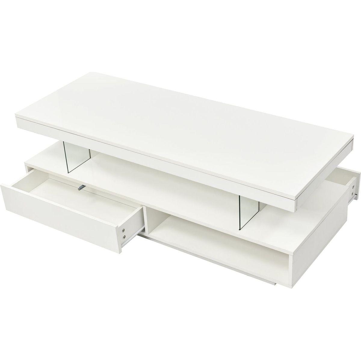 LED Coffee Table with Storage, Modern Center Table with 2 Drawers and Display Shelves, Accent Furniture with LED Lights for Living Room,White